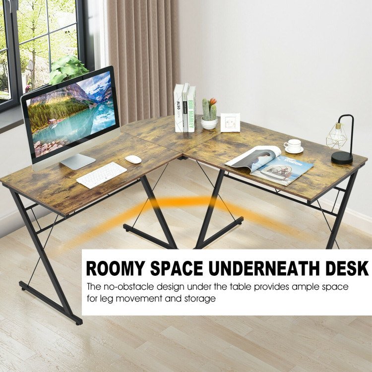 Made of premium P2 MDF and iron pipe, the L-shaped desk has a sturdy frame structure to ensure stability and durability. And the X-shaped brackets on the side reinforce the overall frame. The desk features an L-shape corner design which perfectly fits any home or work office decor. Besides, this desk can be used as a computer desk, office workstation, office desk, writing desk, gaming desk, etc. Personalize your home office with this multi-functional desk. What’s more, it provides large working space for your laptops, books and other office supplies, making everything accessible.