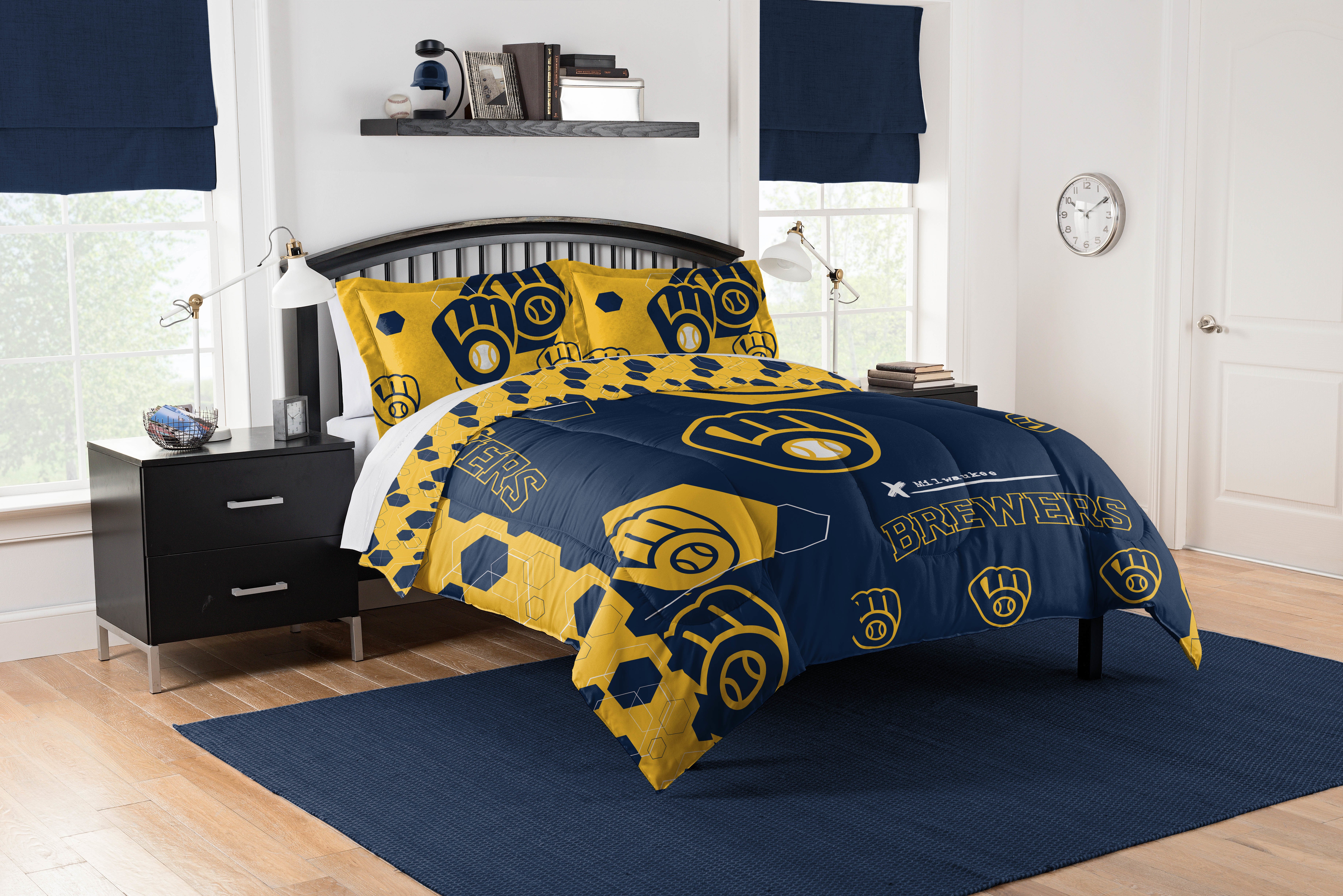 Brewers OFFICIAL MLB "Hexagon" Full/Queen Comforter & Shams Set; 86" x 86" Brewers OFFICIAL MLB "Hexagon" Full/Queen Comforter & Shams Set; 86" x 86" Brewers OFFICIAL MLB "Hexagon" Full/Queen Comforter & Shams Set; 86" x 86"