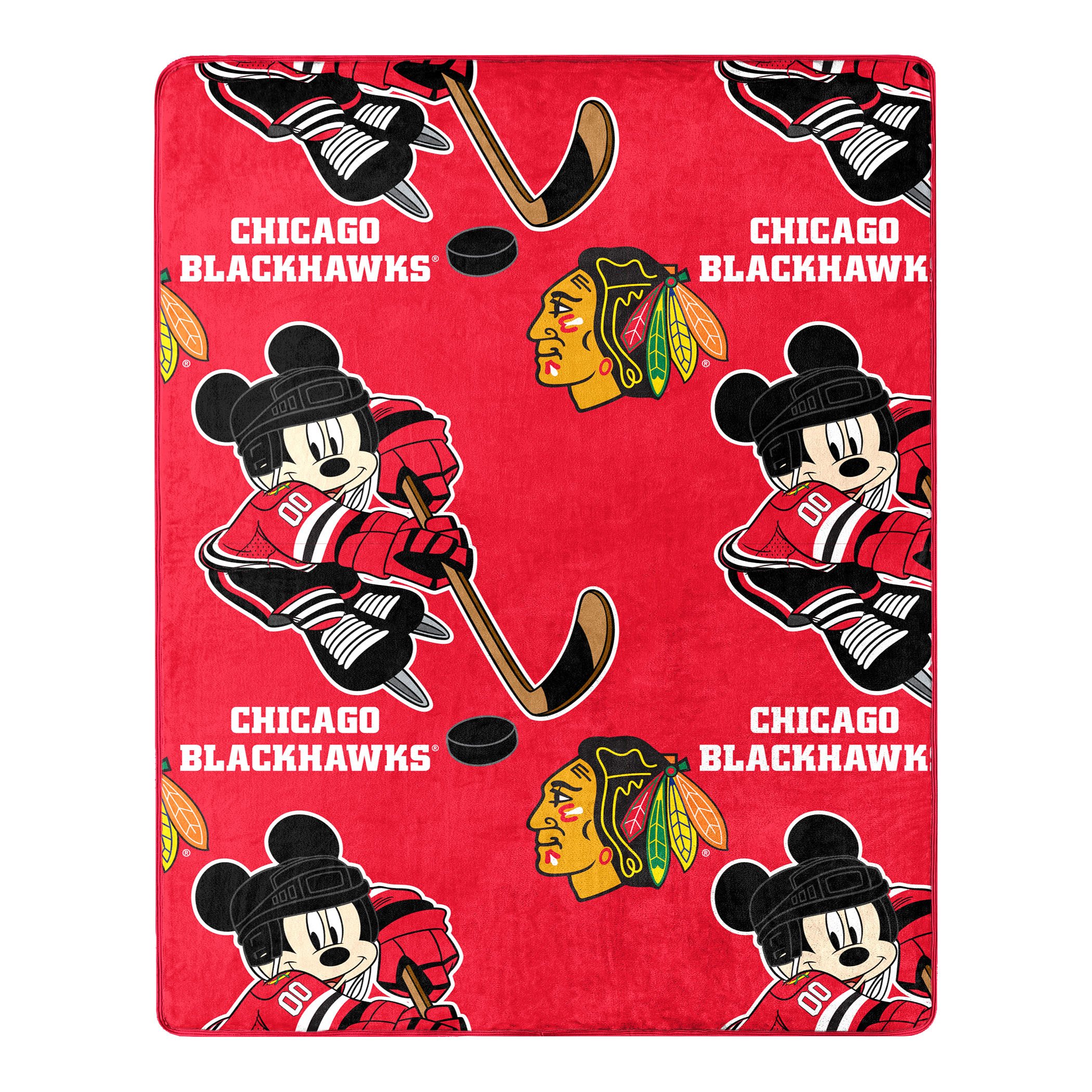 Blackhawks OFFICIAL NHL & Disney's Mickey Mouse Character Hugger Pillow & Silk Touch Throw Set; 40" x 50"