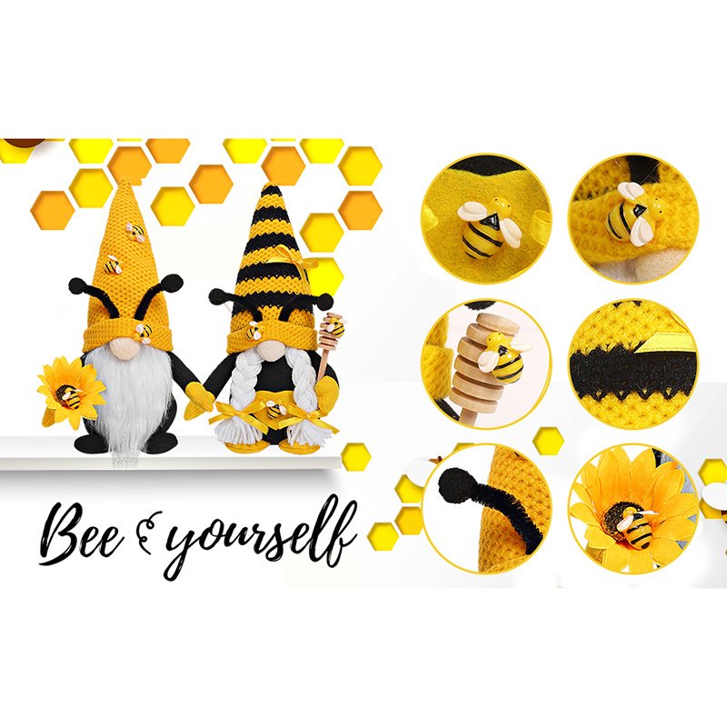 1.[ Spring Bee Gnomes ] Bumble Bee Gnomes Plush Set - Gnome, also known as a Tomte or Nisse.In folklore, Gnome guards home and protect people from misfortune. The elf gnome will bring us good luck,happiness, warmth.