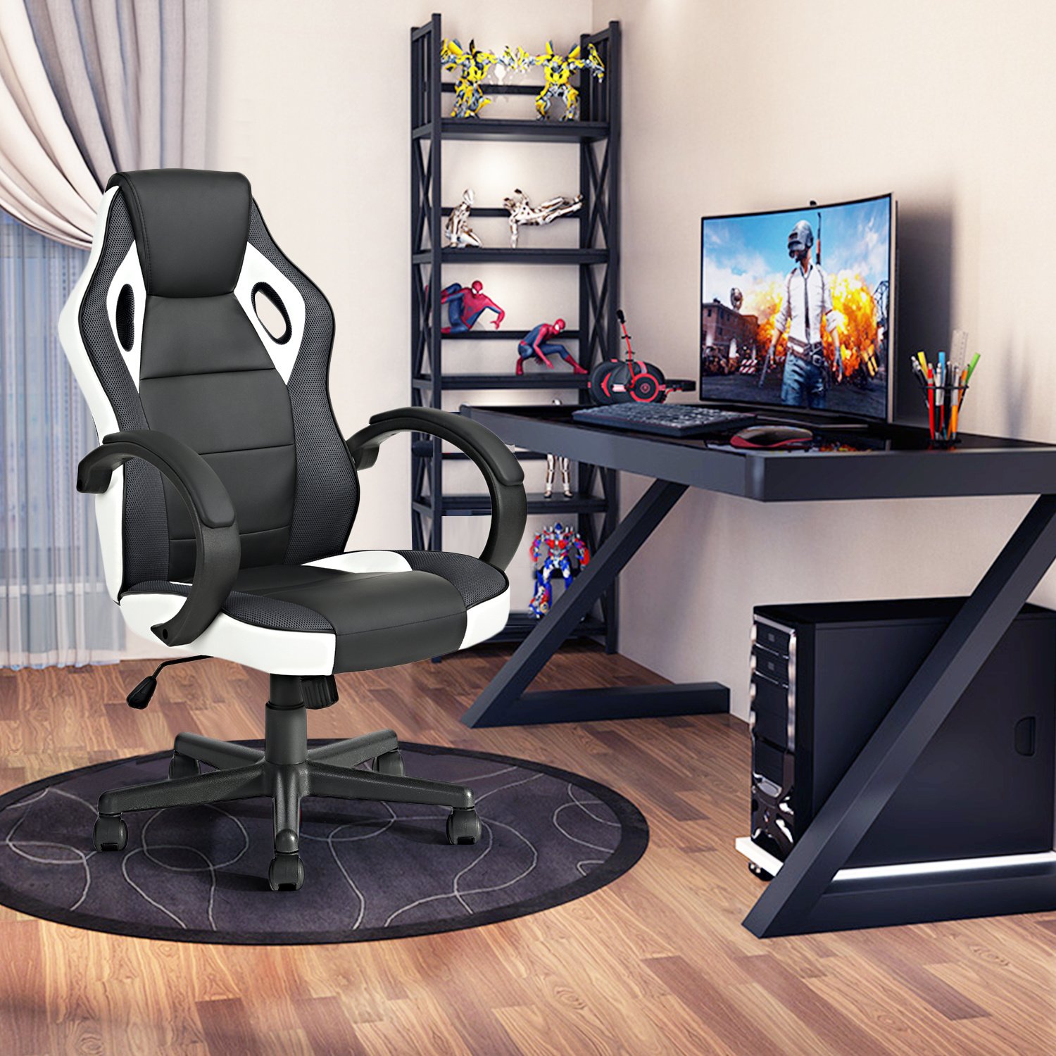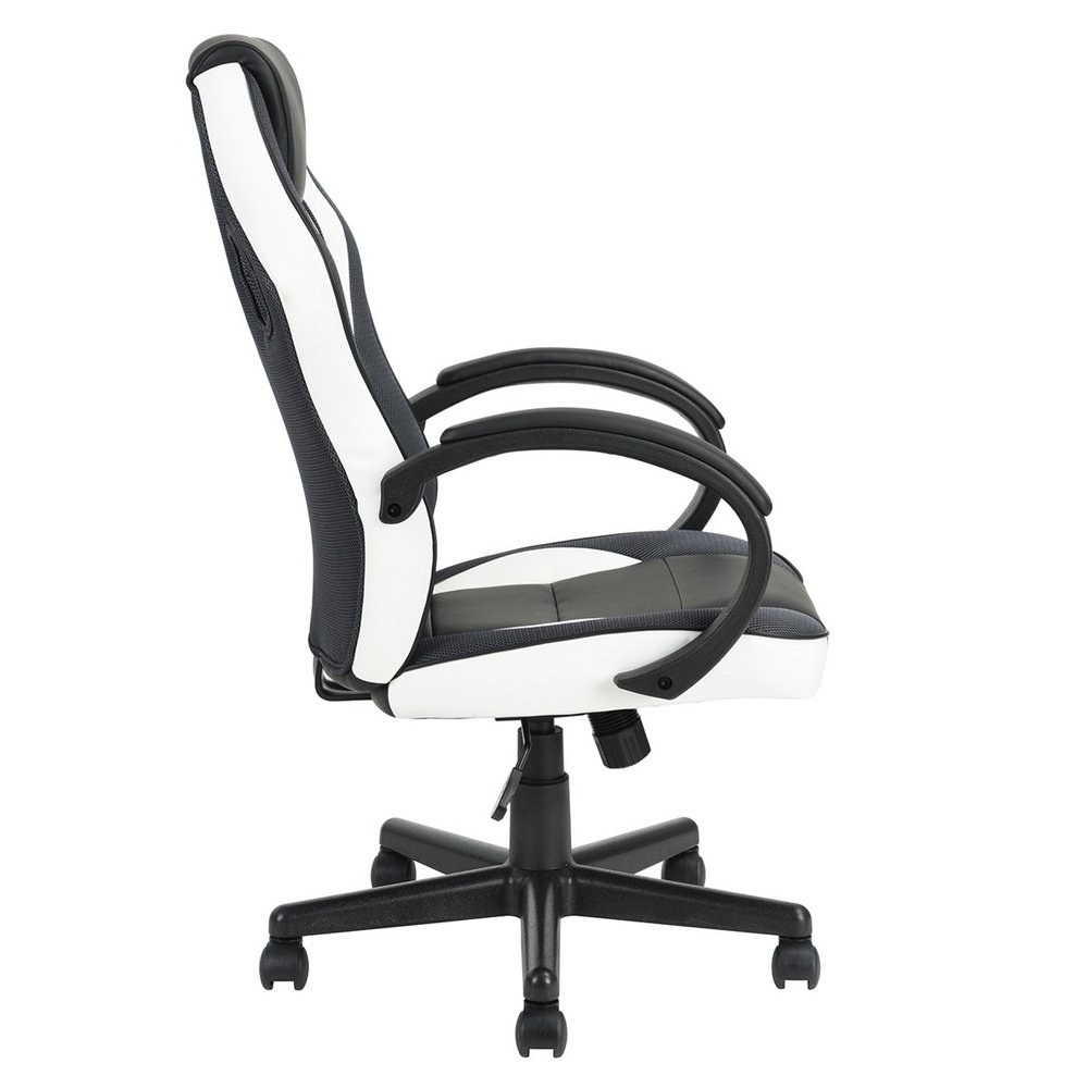 Gaming Office Chair with Fabric Adjustable Swivel; BLACK AND WHITE