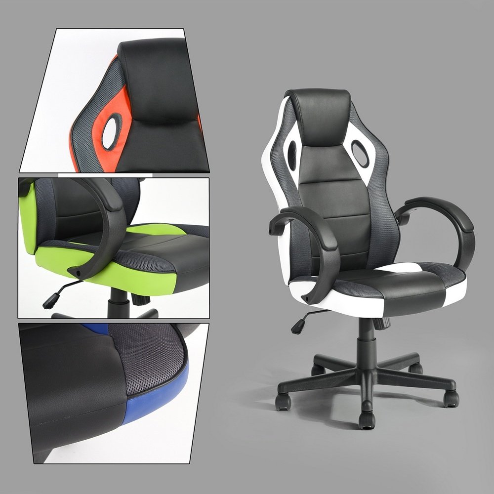 Features-Ergonomic design: Ergonomically curved high backrest can perfectly support your spine as well as your neck.Soft and thick cushion with sponge ensures the breathable comfort whole day; which will keep you relaxed during your longtime working.Simple and generous design; perfect for all places; such as office; study; reception; conference.-High-quality cushion: With high quality leather and design; our chairs are durable and breathable.The seat cushion is filled with high-density sponge; which is thick and full; and has a good resilience. It can quickly cushion the pressure of the human body; making it not easy to dent; and effectively increasing the service life of the computer chair.-Stable base design: The sturdy five-star nylon casters ensure that the chair can move easily and smoothly. The casters with strong practicality are suitable for hard floors; carpet floors; and more; swivel without noise; and won't scratch the floor; easily across smooth floors and carpet; suitable for a variety of floors.-Rugged and durable: This gaming chair uses a unique integrated steel frame technology. Through solid materials; the chair can bear up to 550 LB; good wear resistance. And its life span is extended dozens of times. Adding this chair to your game room; study room; office; home; meeting room or other places is definitely the perfect choice!
