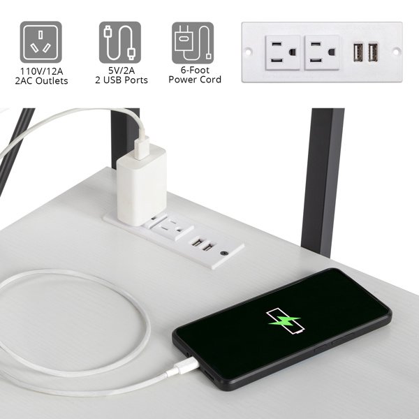 FCH 120*60*120cm Particleboard Paste Triamine H Type With Non-woven Bag USB Power Port Computer Desk White