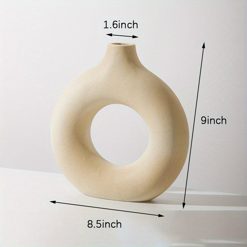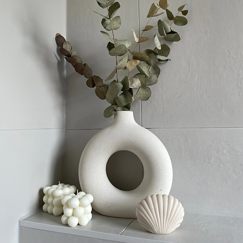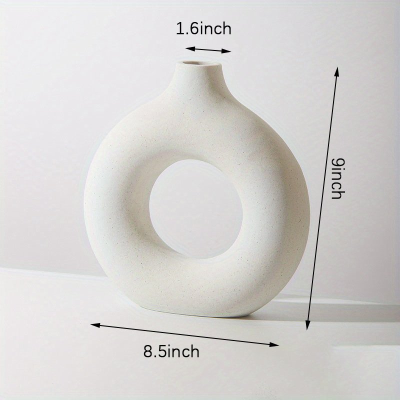 Home > 1pc; White Ceramic Vase White Vases For Decor; Modern Home Decor Vase; Boho Vases For Decor; Circle Vase; Round Vase; Donut Vase; Decorative Vase