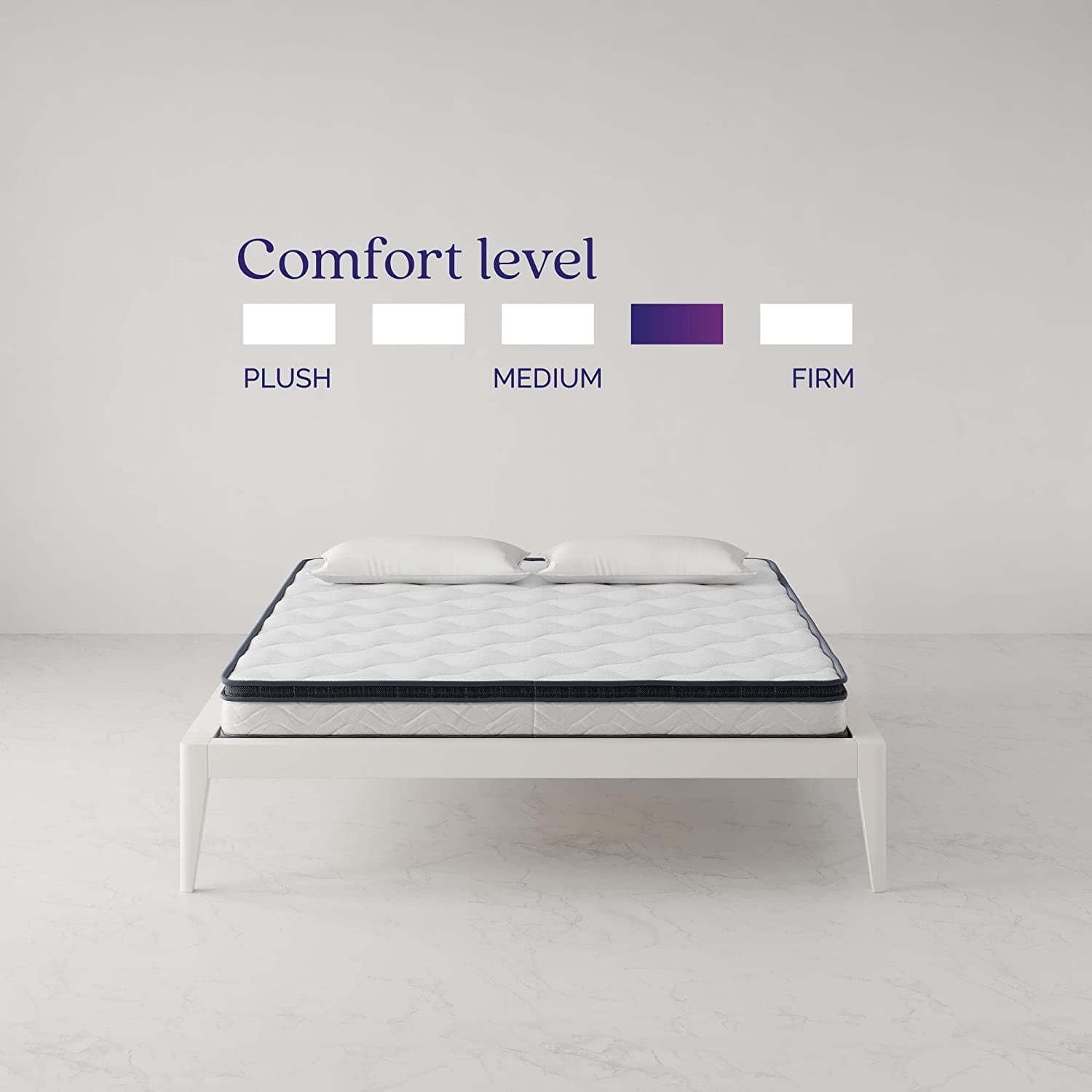 6" hybrid mattress with medium firm comfort level and soft polyester knit cover. Seamless EuroTop design provides an extra layer of comfort and long-lasting edge-to-edge support. 5.5" innerspring coil system offers consistent support and proper balance. Coil count: 364 Gel memory foam top layer molds to the body's natural shape, helps provide a cool night's sleep, helps evenly distribute body weight to reduce motion transfer and provides balanced support to alleviate pressure points. Ships in one box. Shipped rolled and compressed. Available in Twin, Full and Queen size. Offered in various thickness options: 6" and 8". 10-year limited warranty. Product dimensions: 80"L x 60"W x 6"H. Net weight: 57.5 lbs. Shipping dimensions: 62"L x 11"W x 11"H. Gross weight: 64 lbs.