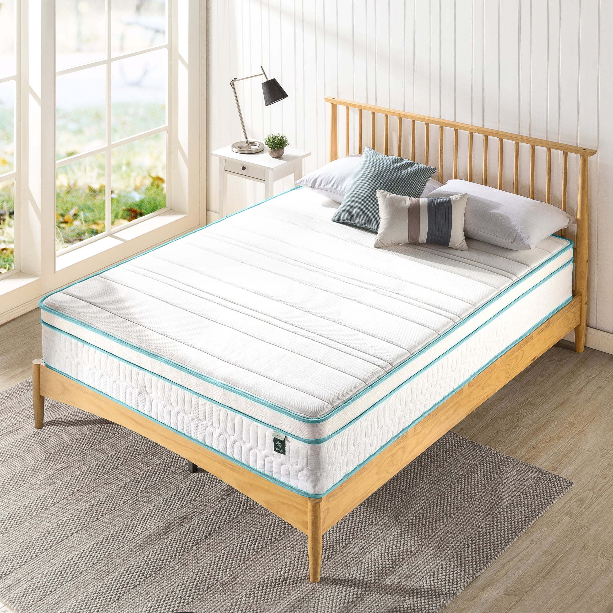 Green Tea Infused Euro Top 12" Innerspring Mattress, Queen GREAT SLEEP IS REFRESHING SLEEP – Our famous odor-neutralizing green tea infused foam is now available in a Innerspring mattress with a plush euro top and traditional innersprings for comfort that's supportive, enveloping and always fresh THE ULTIMATE COMFORT BLEND – Made with .5 inch memory foam, .2 inch high-density foam, 2 inches Visco-latex foam, 1 inch comfort foam and a 6 inch base layer of steel innersprings for support with pressure-relieving softness Ideal for stomach sleepers and petite to average-weight individuals CERTIPUR US CERTIFIED - Highest quality foam is CertiPUR US Certified for durability, performance, and content EXPERTLY PACKAGED - Our technology allows this mattress to be efficiently compressed into one box that's easily shipped and maneuvered into the bedroom; simply unbox, unroll and this mattress does the rest, expanding to its original shape within 72 hours Memory, high-density, comfort and Visco latex foams with steel innersprings Twin mattress supports a maximum weight of 250 lbs, while all other sizes can support up to 500 lbs Worry-free 10 year limited warranty included See our assortment of products