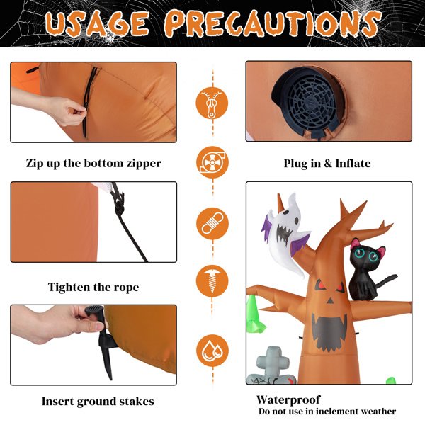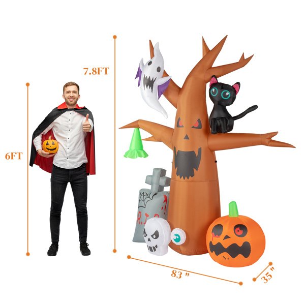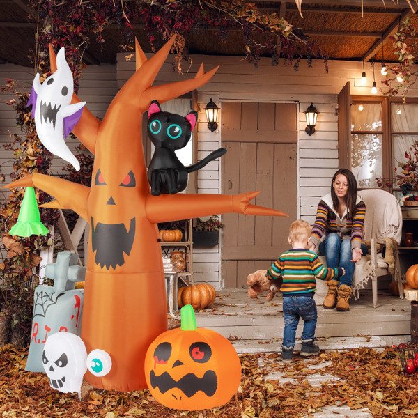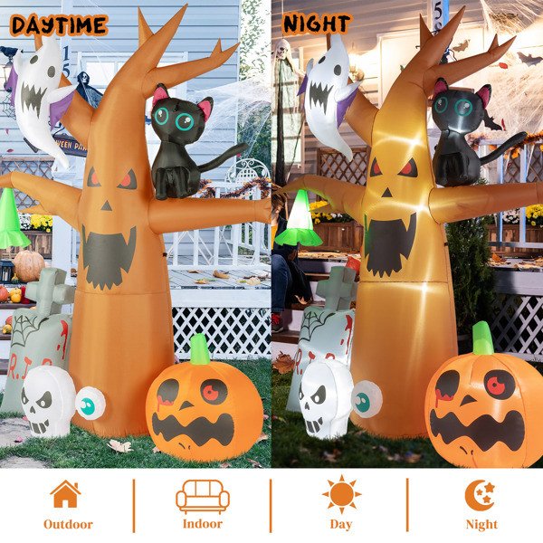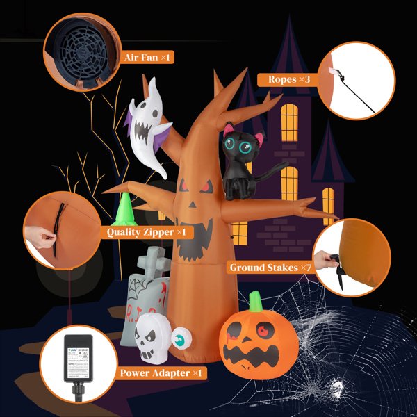 Halloween is here, give your home a perfect Halloween atmosphere! Recommend this8ft Garden 9pcs LED String Lights With Tombstone Pumpkin Ghost Tree Inflatable Halloween Decoration to you here. Made of high quality waterproof polyester, not easy to tear. The excellent stitching keeps it always inflated, and it will not leak even if it is inflated for a long time. Built-in LED lights, better viewing at night. Can be placed in the yard, garden, lawn, patio, porch, home and more. And it can be used repeatedly, so what are you waiting for? Place an order now!