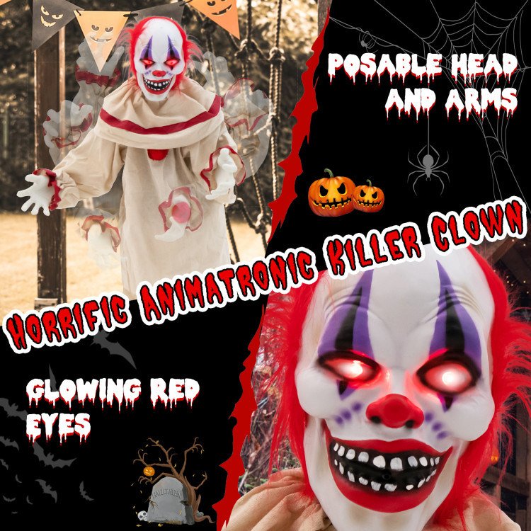 5 FT Grins Animatronic Killer Clown Halloween Decoration with Glowing Red Eyes