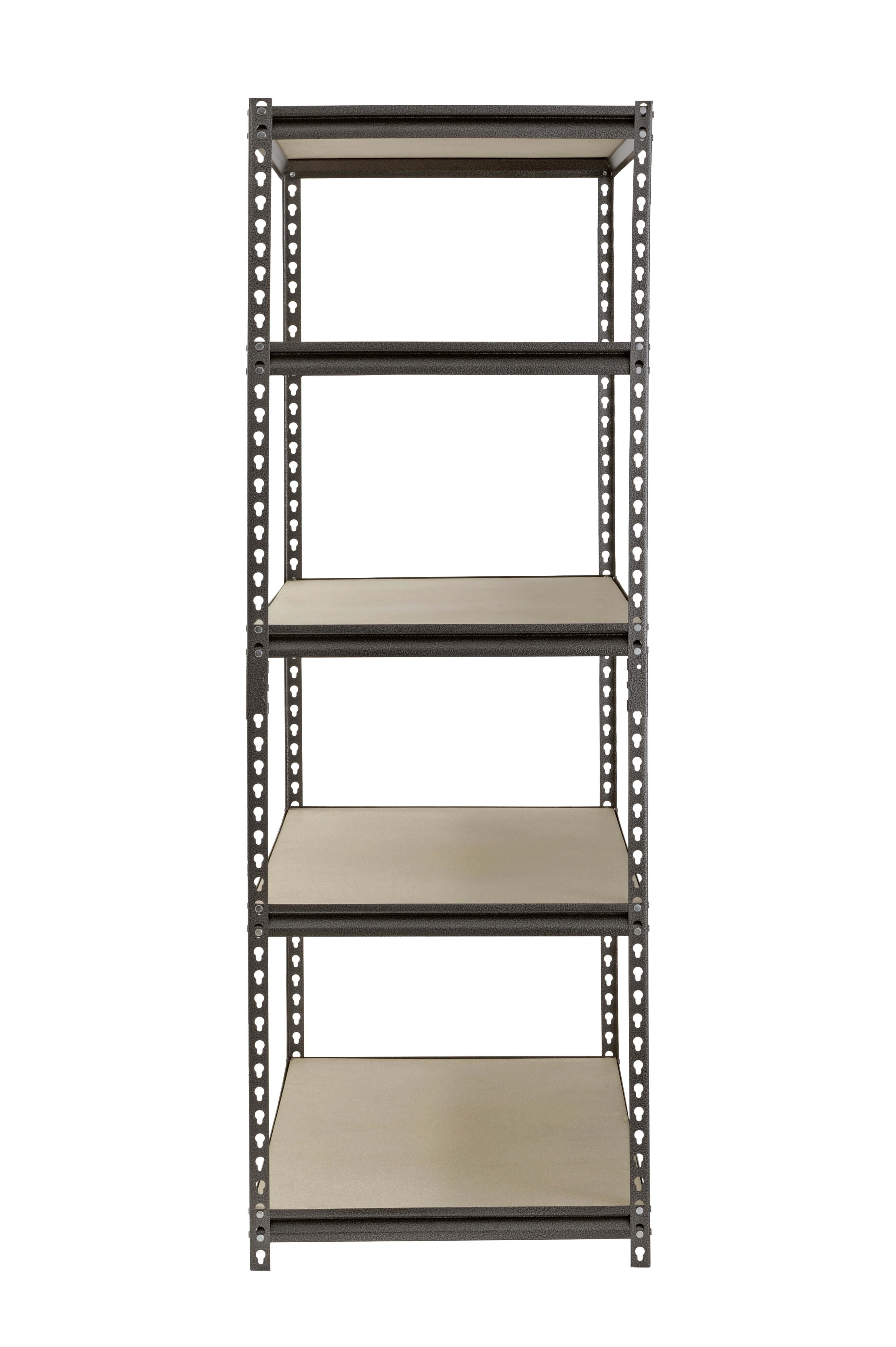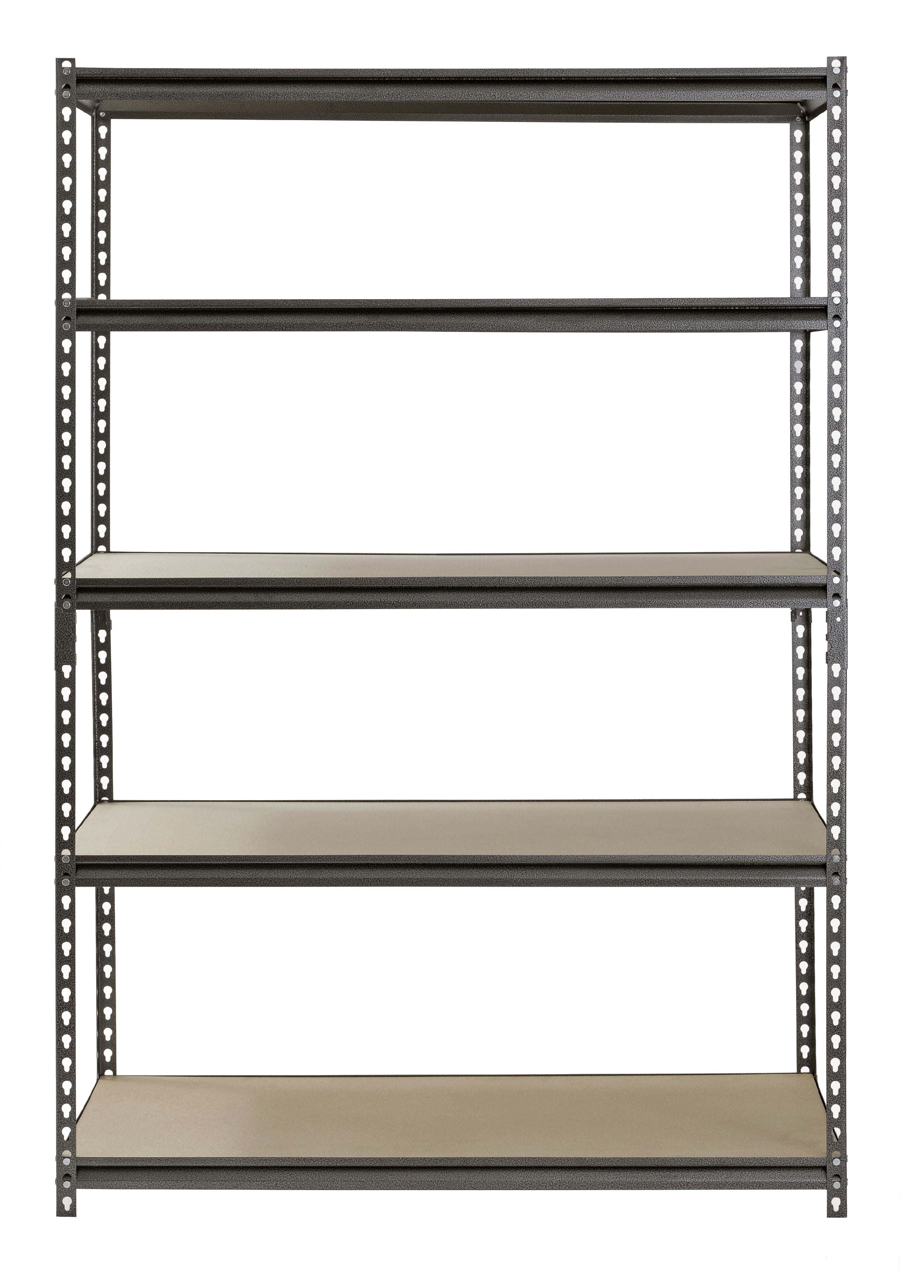 Create some extra storage space in your home by adding this Muscle Rack 5-Shelf Steel Shelving. This item features industrial-grade steel construction with a durable silver-vein finish to offer durability and style. This metal storage shelving unit measures 48"W x 24" D x 72"H, and its Z-beam design provides strength and rigidity, allowing it to hold heavy loads. Five shelves with particle board decking are supported by double-riveted beams and braces and can be adjusted in 1.5" increments to accommodate items of various sizes. The 5 shelf storage rack features a rivet lock design and includes post connectors to make assembly fast and easy without needing nuts or bolts. It can be assembled 72" shelving unit or made into two 36" units. These shelves are ideal for organizing tools and materials for easy access or for storing shelf-stable food items, art supplies, toys, outdoor equipment and more. Optimize utility and organization with this Muscle Rack 5-Shelf Steel Shelving.