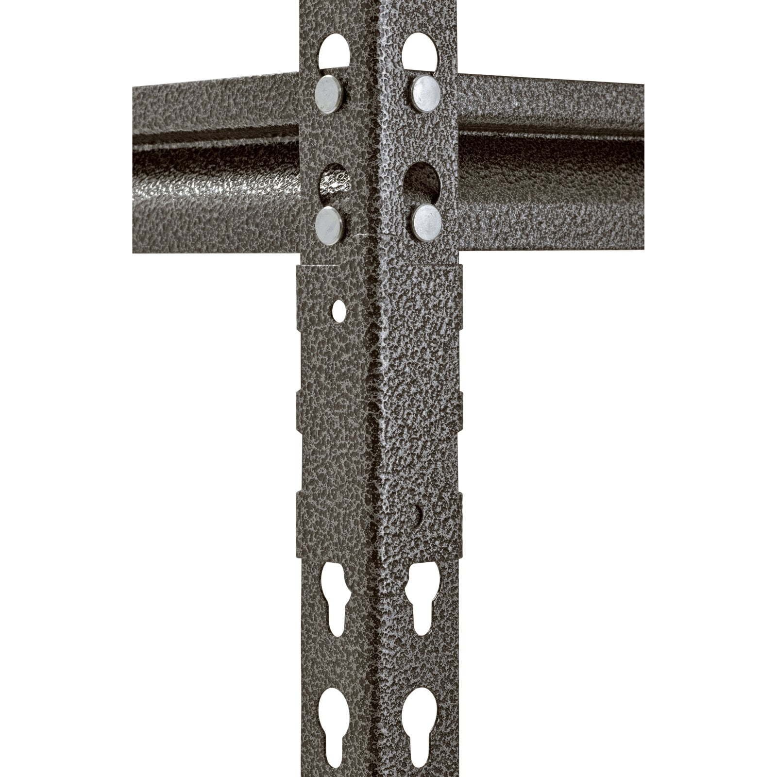 Shelves are made of particle board Shelves supported by double-riveted beams and braces Post connectors allow easy assembly in just minutes Rivet-lock design for boltless assembly Instructions included Rubber mallet recommended for assembly (sold separately) Model# UR482472PB5P-SV Muscle Rack shelving is built with industrial-grade steel construction for optimal durability and strength Durable design Adjustable, metal 5-shelf storage rack shelves move easily for quick customization.