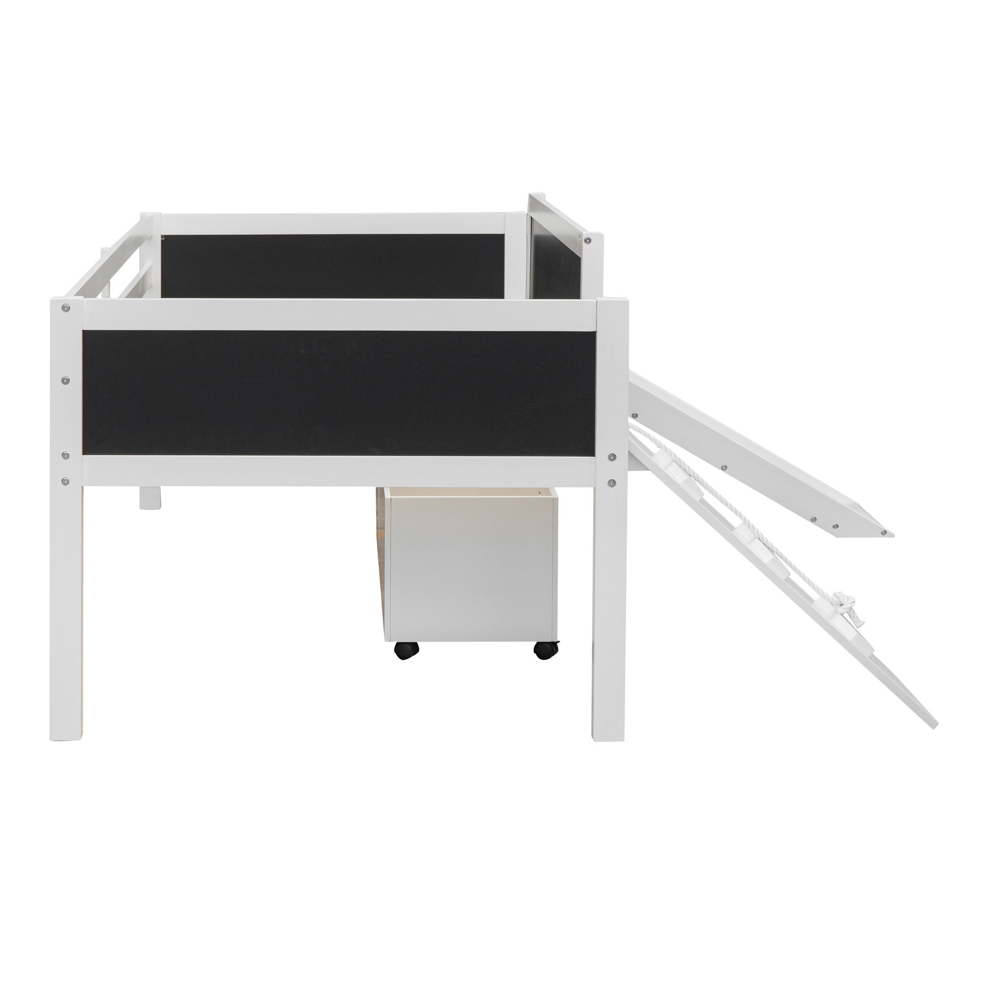 A novel idea be put into design when manufacturing this marvelous loft bed, a ladder be exchanged to a climbing frame which appealed to mostpeoplemuch more. And the way to get out of bed is sliding. This interesting design loft bed offer the chance to train your physical coordination in daily life and push them gain more happiness in bedroom. The double-sided chalkboard set on three sides allow you useyourimagination and creativity at any time, and stimulate the potential of your brain. Additional storage boxes is another shining idea in design as they are great useful and helpful tools for parents. The open design storage boxes are the perfect space to store all sorts of toys and daily necessities. Four classic colors make you can chooseyourfavorite color freely.