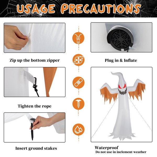 Halloween is here, give your home a perfect Halloween atmosphere! Recommend this 12ft 4pcs LED Lights Giant Scary Ghost Flames and Flashing Red Eyes Inflatable Halloween Decoration to you here. Made of high quality waterproof polyester, not easy to tear. The excellent stitching keeps it always inflated, and it will not leak even if it is inflated for a long time. Built-in LED lights, better viewing at night. Can be placed in the yard, garden, lawn, patio, porch, home and more. And it can be used repeatedly, so what are you waiting for? Place an order now!