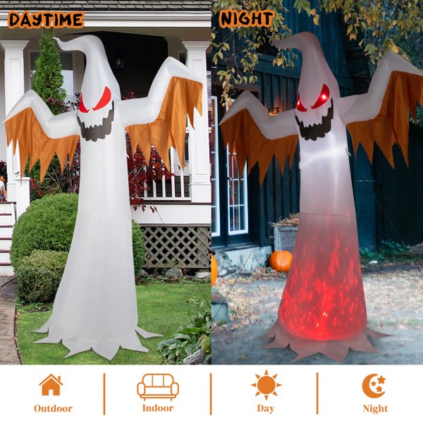 12ft 4pcs LED Lights Giant Scary Ghost Flames and Flashing Red Eyes Inflatable Halloween Decoration
