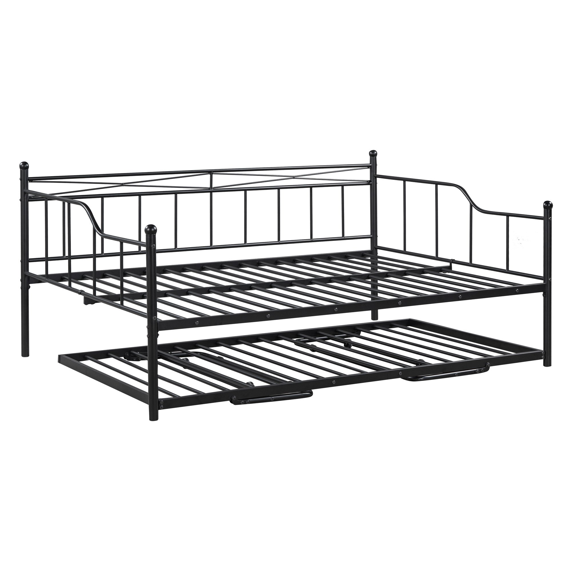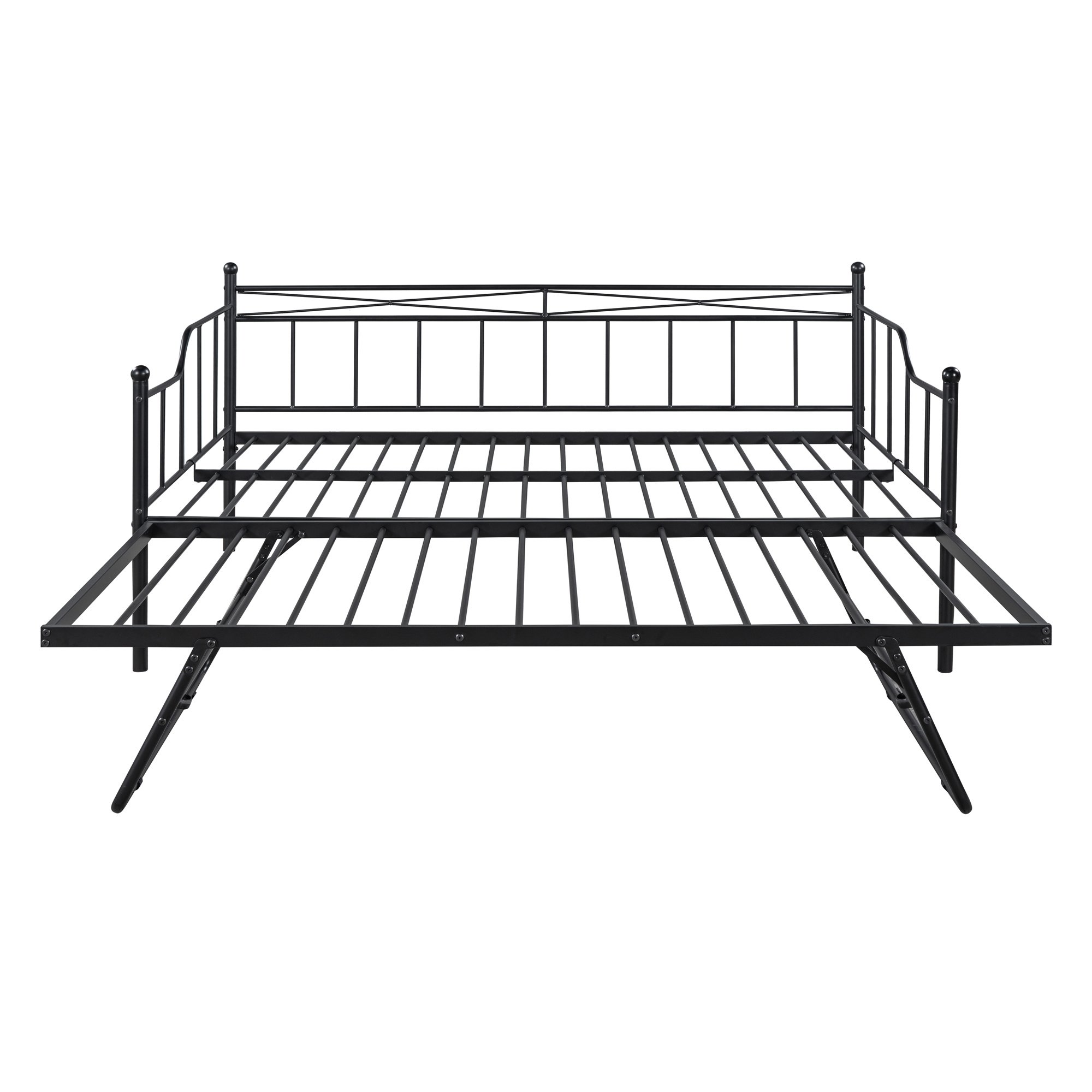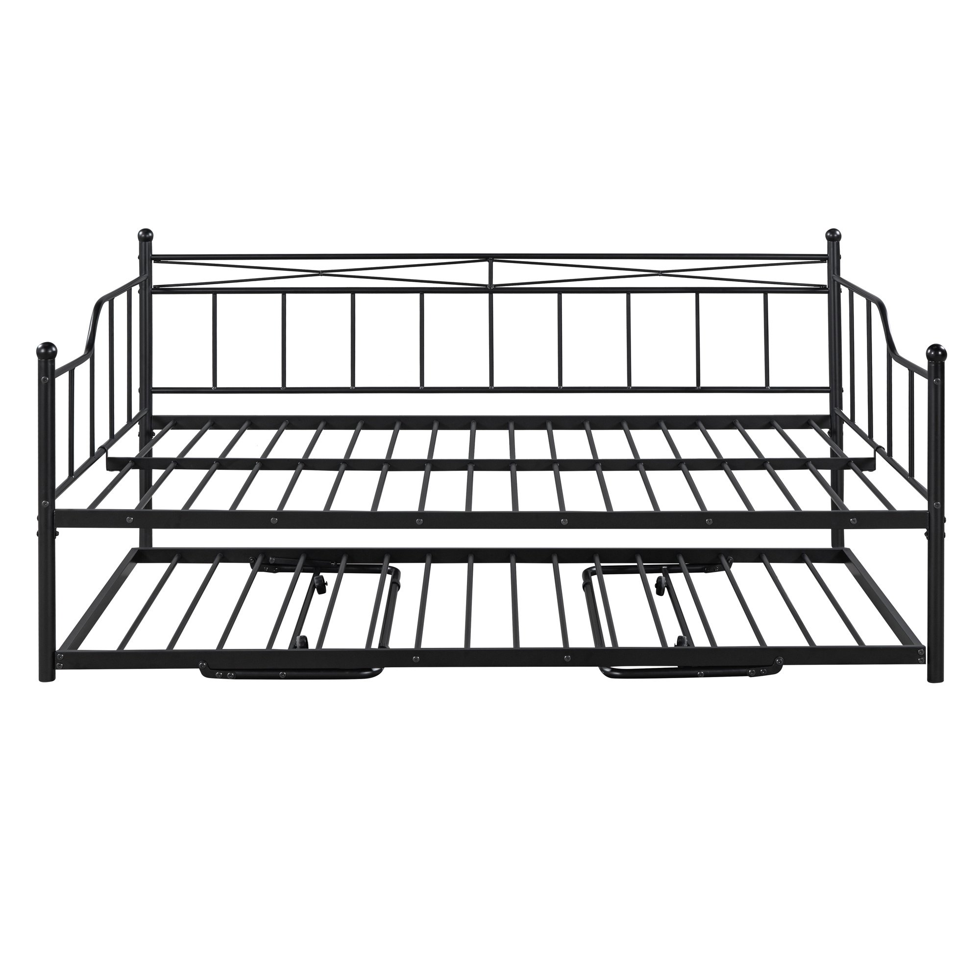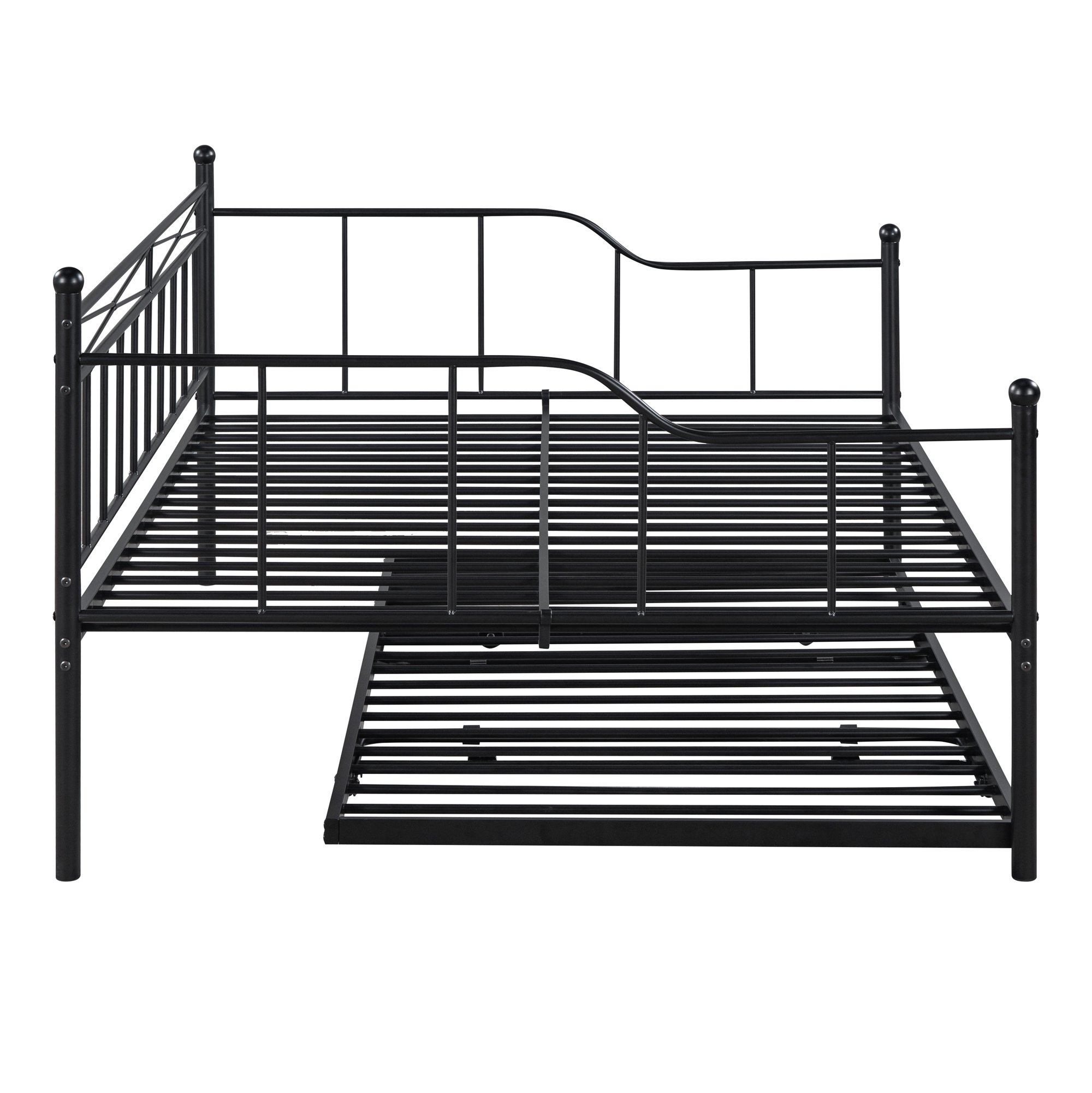 Full Size Metal Daybed with Twin Size Adjustable Trundle, Portable Folding Trundle
