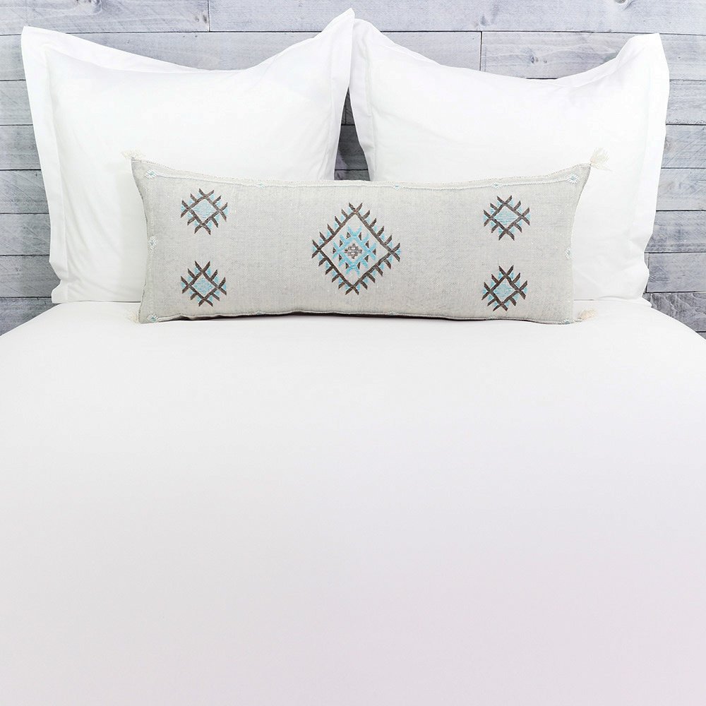 Moroccan Handwoven Cactus Silk Lumbar Pillow 14 x 36 Embroidered cushion