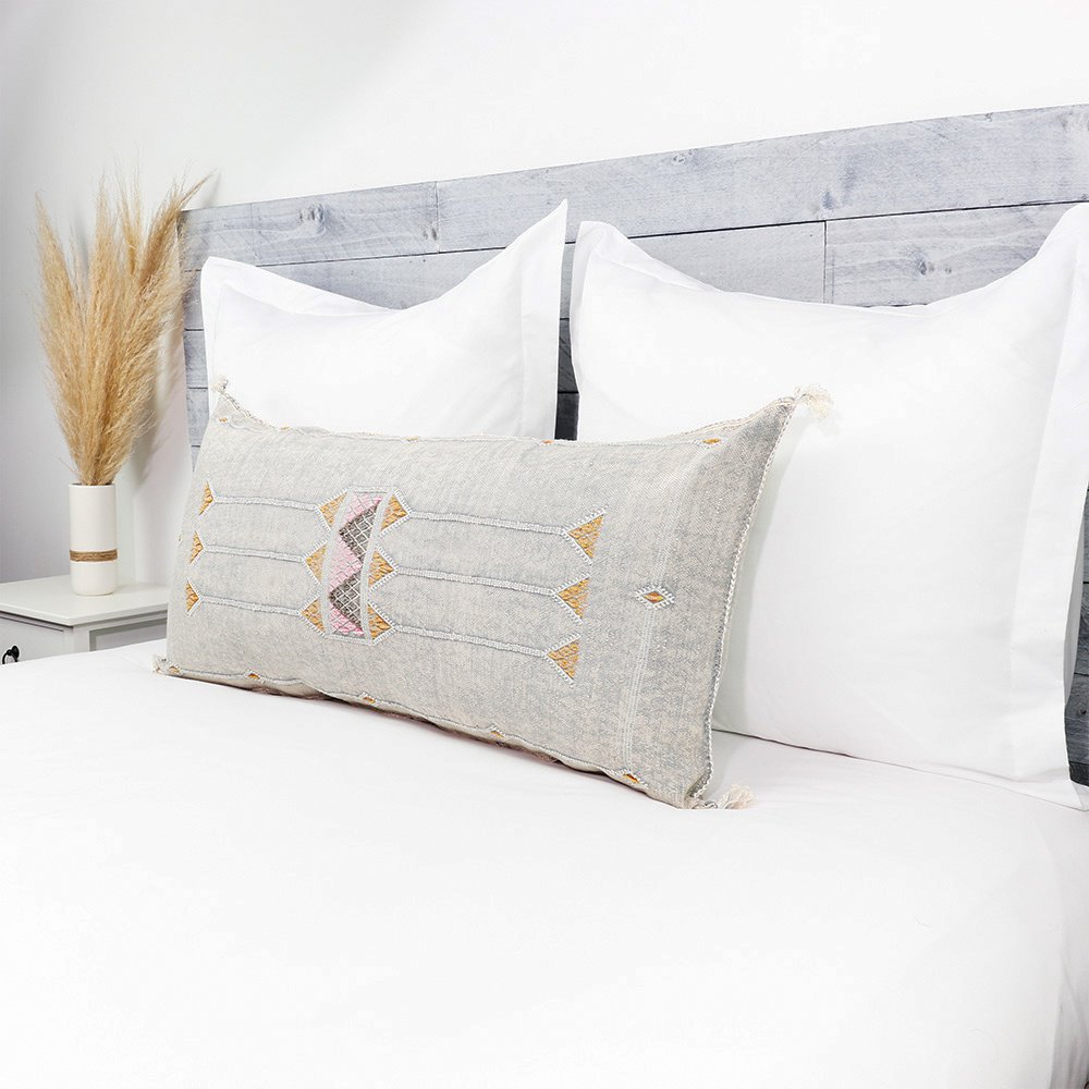 Moroccan Handwoven Cactus Silk Lumbar Pillow 14 x 36 Embroidered cushion