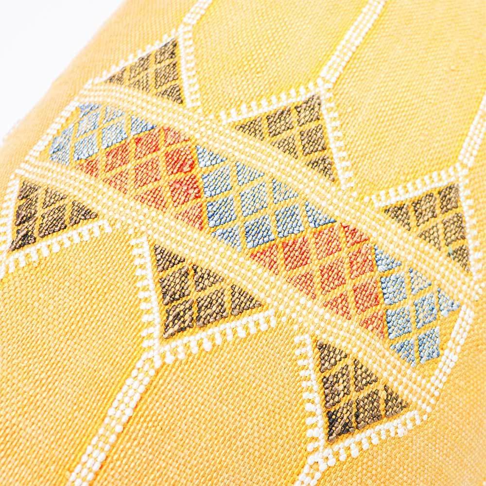 Description: Made from handwoven cactus silk fabric this medium size Lumbar Pillow can add a luxe accent to any king or queen size bedroom. With tribal Berber motifs expressed by the Artisans and hand-weavers, this accent pillow can transform any space by adding elegance and charm.