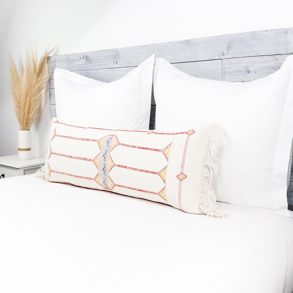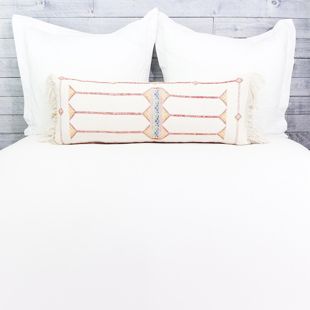 Moroccan Handwoven Cactus Silk Lumbar Pillow 14 x 36 Embroidered cushion