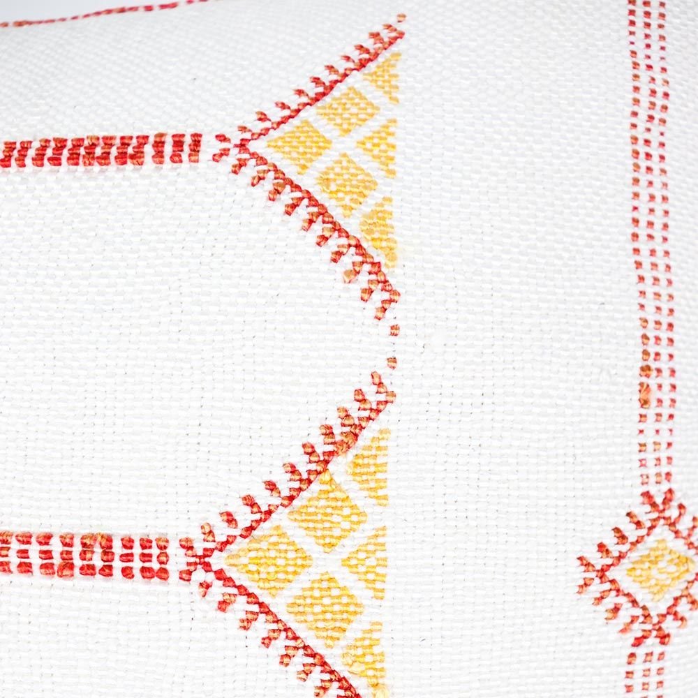 Artisanship: Fabric is made from 100% organic premium quality cactus silk. Local villagers in the Atlas Mountains of Morocco harvest the leaves of the Sabra Cactus plant. Artisans weave the cactus filaments into a soft, durable yarn. They dye the yarn with all-natural botanical pigments for maximum vibrancy. Our expert weavers loom the textured yarn into pillow covers with traditional wooden pedal looms, using patterns curated by our designers.