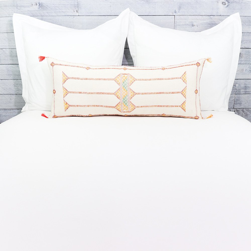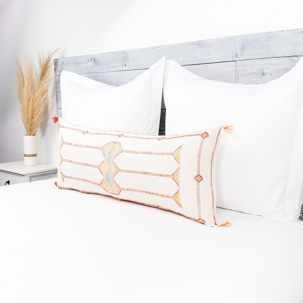 Moroccan Handwoven Cactus Silk Lumbar Pillow 14 x 36 Embroidered cushion