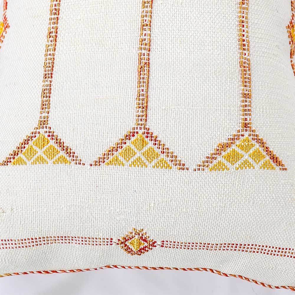 Description: Made from handwoven cactus silk fabric this medium size Lumbar Pillow can add a luxe accent to any king or queen size bedroom. With tribal Berber motifs expressed by the Artisans and hand-weavers, this accent pillow can transform any space by adding elegance and charm.