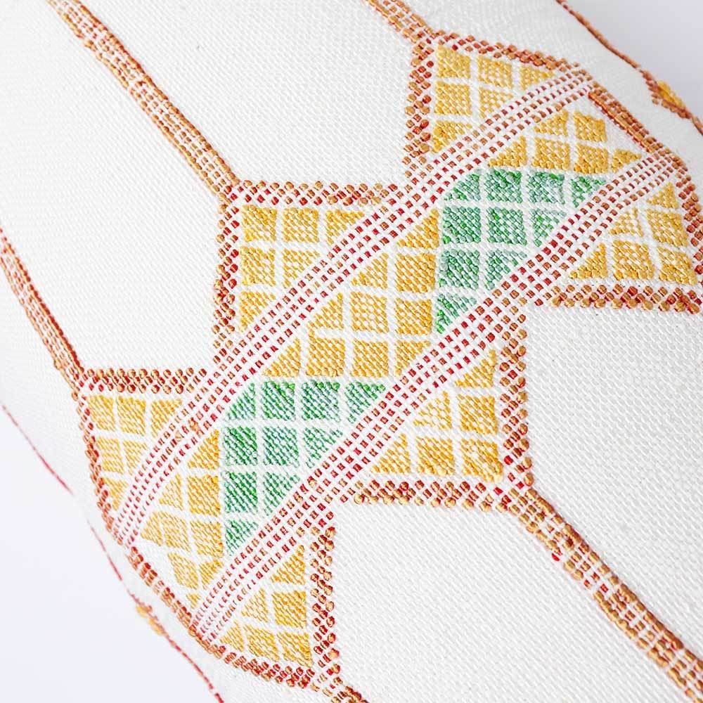Artisanship: Fabric is made from 100% organic premium quality cactus silk. Local villagers in the Atlas Mountains of Morocco harvest the leaves of the Sabra Cactus plant. Artisans weave the cactus filaments into a soft, durable yarn. They dye the yarn with all-natural botanical pigments for maximum vibrancy. Our expert weavers loom the textured yarn into pillow covers with traditional wooden pedal looms, using patterns curated by our designers.