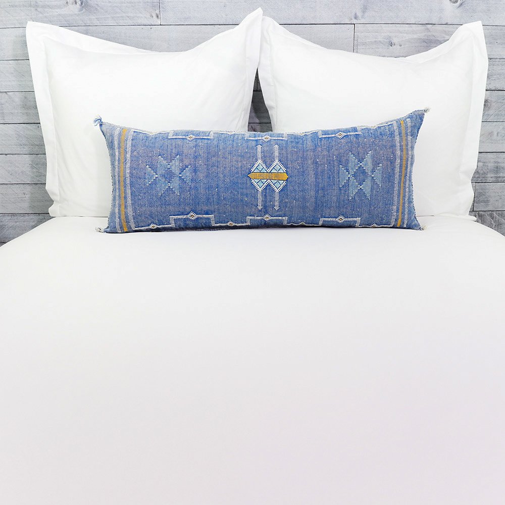 Moroccan Handwoven Cactus Silk Lumbar Pillow 14 x 36 Embroidered cushion