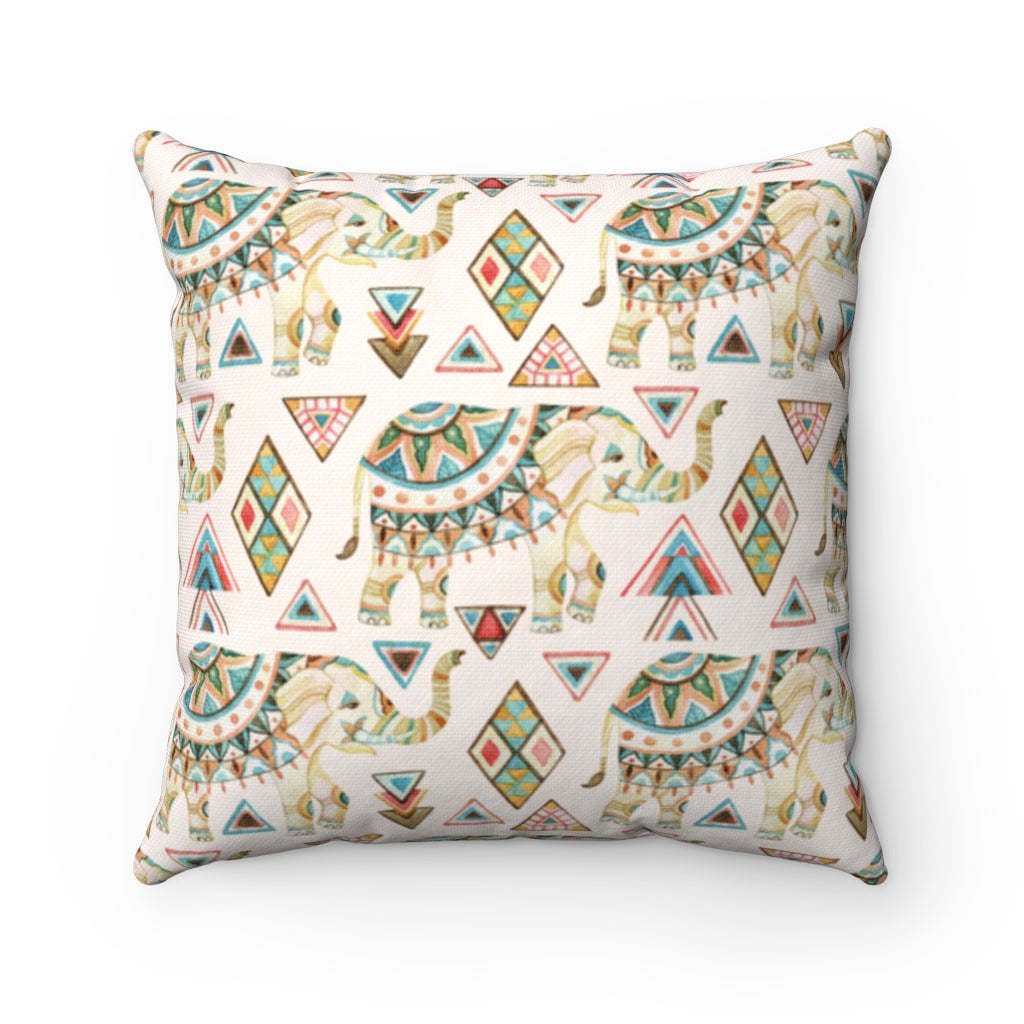 Rustic Elephant Two Color Sided Cushion. Room accents shouldn't be underrated, brigten up your sofa with this beautiful piece. These beautiful indoor cushion in various sizes serve as statement pieces, creating a personalized environment. .: 100% Polyester cover.: Double sided print.: Concealed zipper.: Polyester pillow included.: 4 Sizes