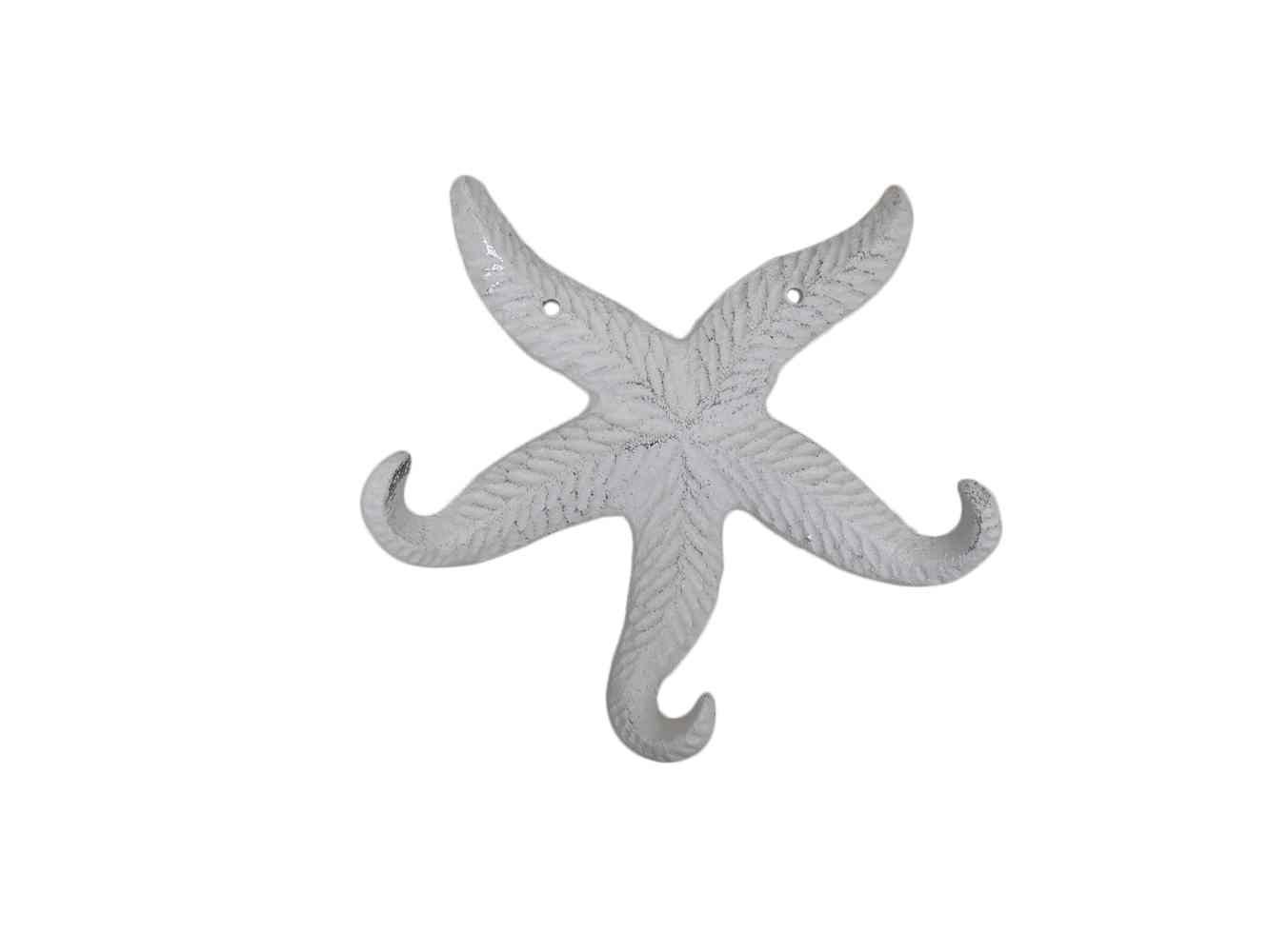Rustic Whitewashed Cast Iron Wall Mounted Decorative Metal Starfish Triple Hook 8""