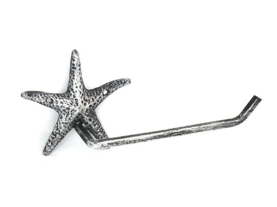 Home > Antique Silver Cast Iron Starfish Hand Towel Holder 10""