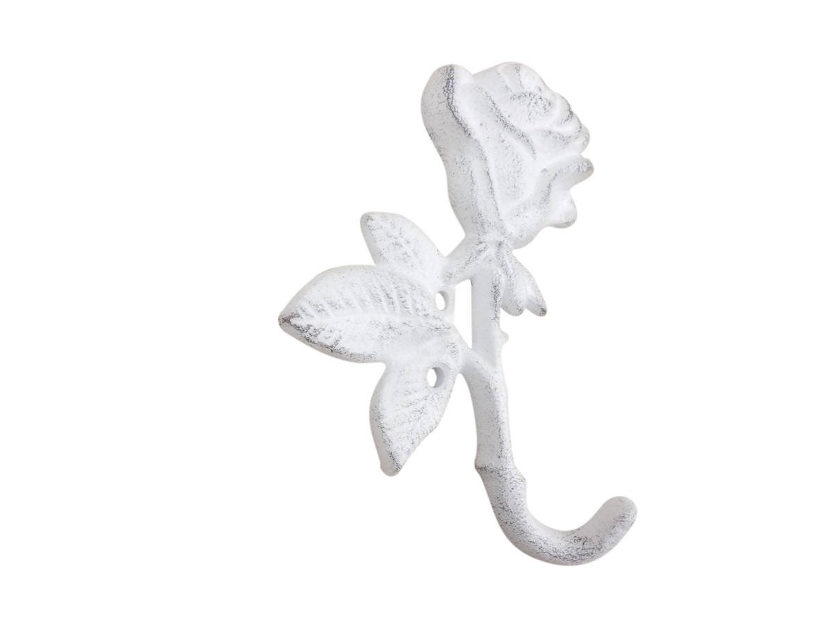Whitewashed Cast Iron Long Stem Rose Decorative Metal Wall Hook 5.5"" Whitewashed Cast Iron Long Stem Rose Decorative Metal Wall Hook 5.5"" Whitewashed Cast Iron Long Stem Rose Decorative Metal Wall Hook 5.5""
