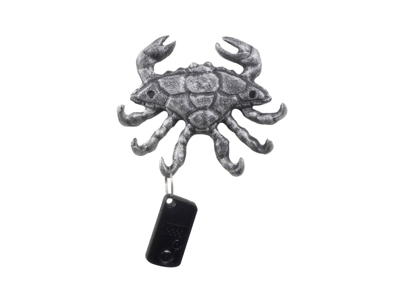 Rustic Silver Cast Iron Decorative Crab with Six Metal Wall Hooks 7"" Rustic Silver Cast Iron Decorative Crab with Six Metal Wall Hooks 7"" Rustic Silver Cast Iron Decorative Crab with Six Metal Wall Hooks 7""