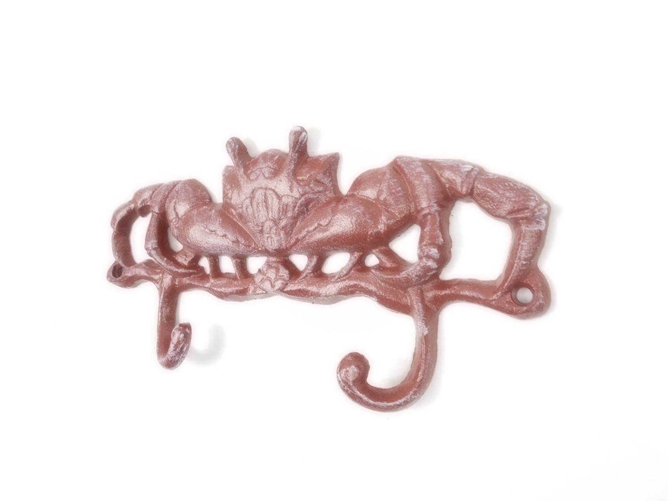 Whitewashed Red Cast Iron Decorative Crab Metal Wall Hooks 10.5"" Whitewashed Red Cast Iron Decorative Crab Metal Wall Hooks 10.5"" Whitewashed Red Cast Iron Decorative Crab Metal Wall Hooks 10.5""