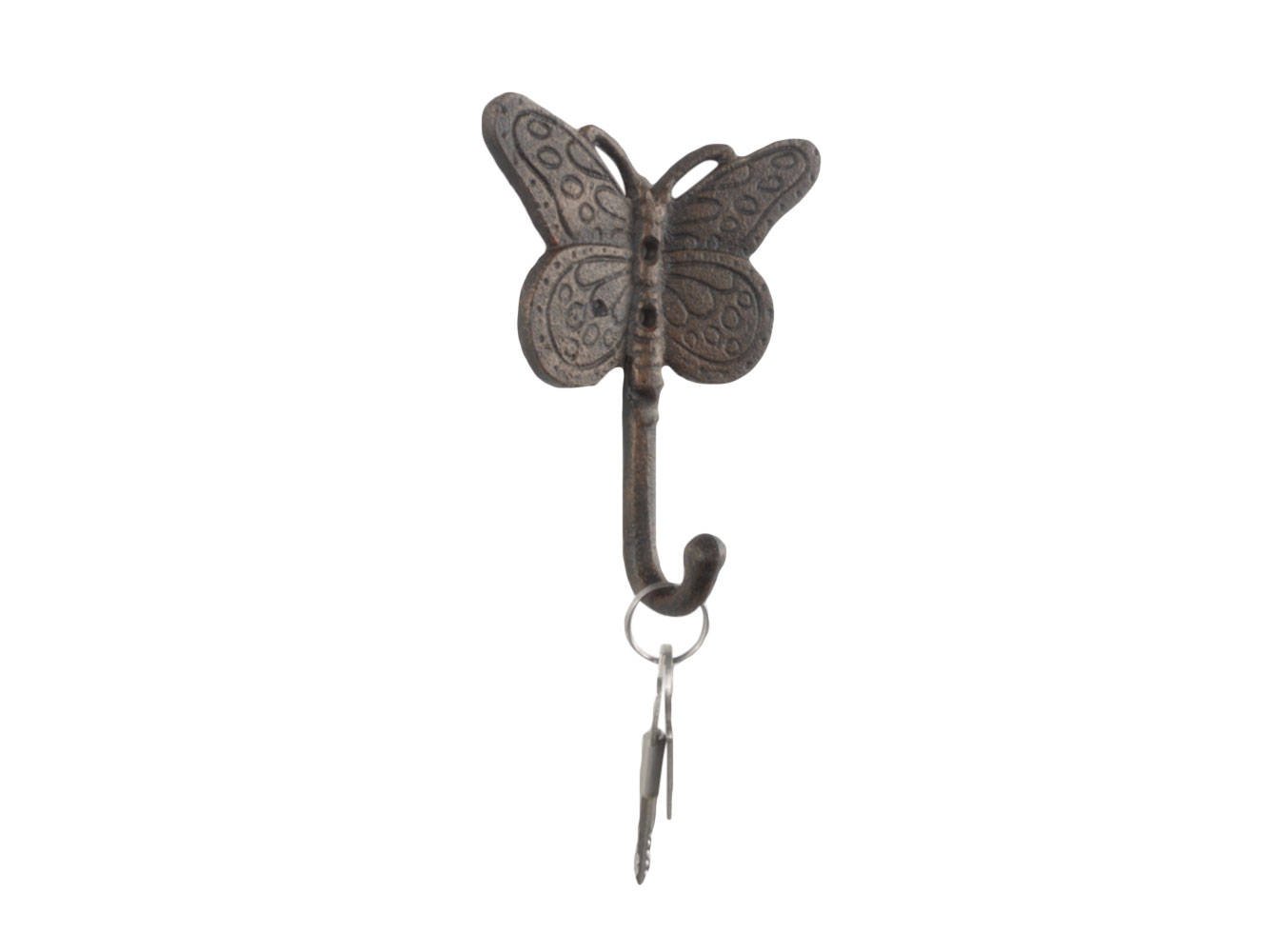 This Rustic Copper Cast Iron Butterfly  Hook 5" is the perfect addition to any magical fantasy themed home. Ideal for hanging clothes and accessories, this durable butterfly hook 5" is handcrafted from cast iron. Easily mountable, display this decorative hook to show those who visit your home your affinity for the magical fantasy lifestyle.
