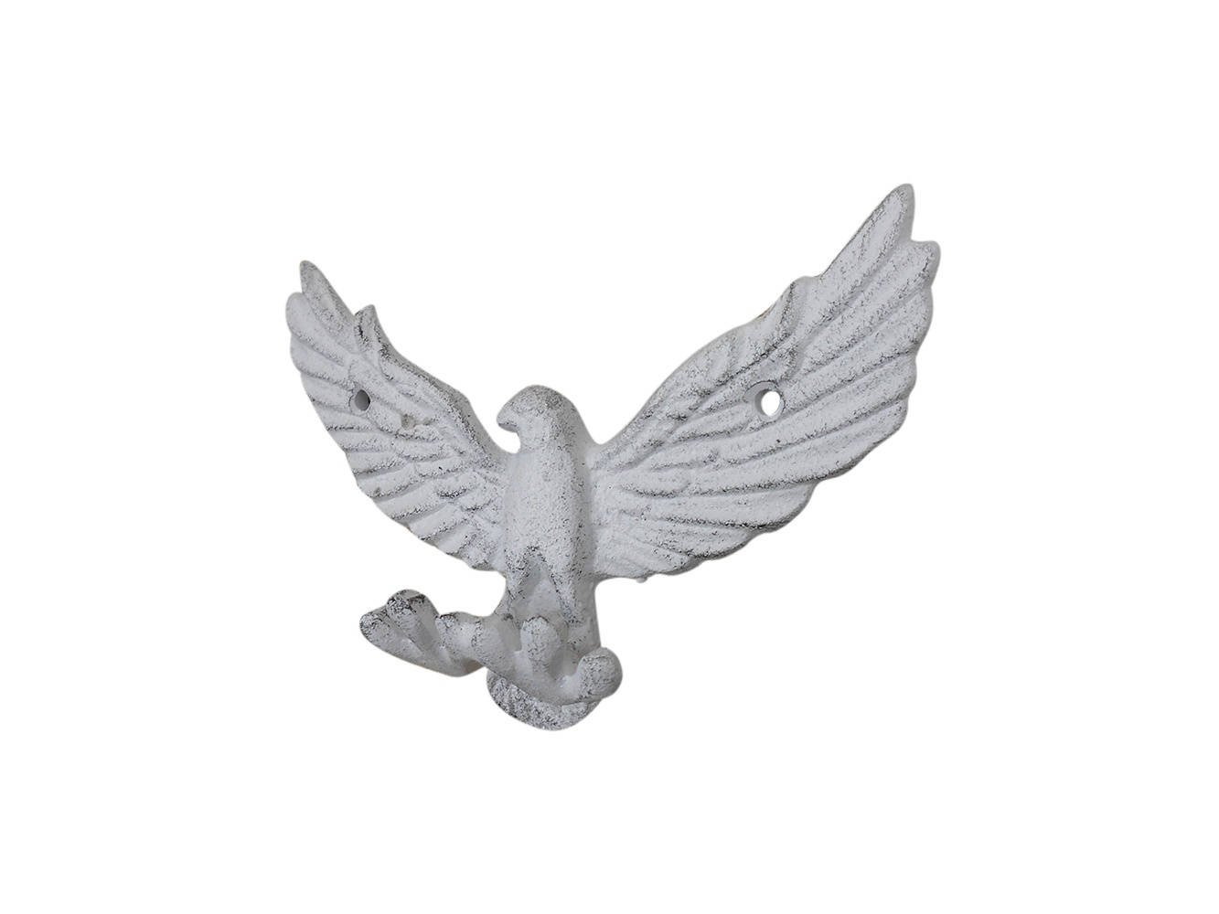 Whitewashed Cast Iron Flying Eagle Decorative Metal Talons Wall Hooks 6""
