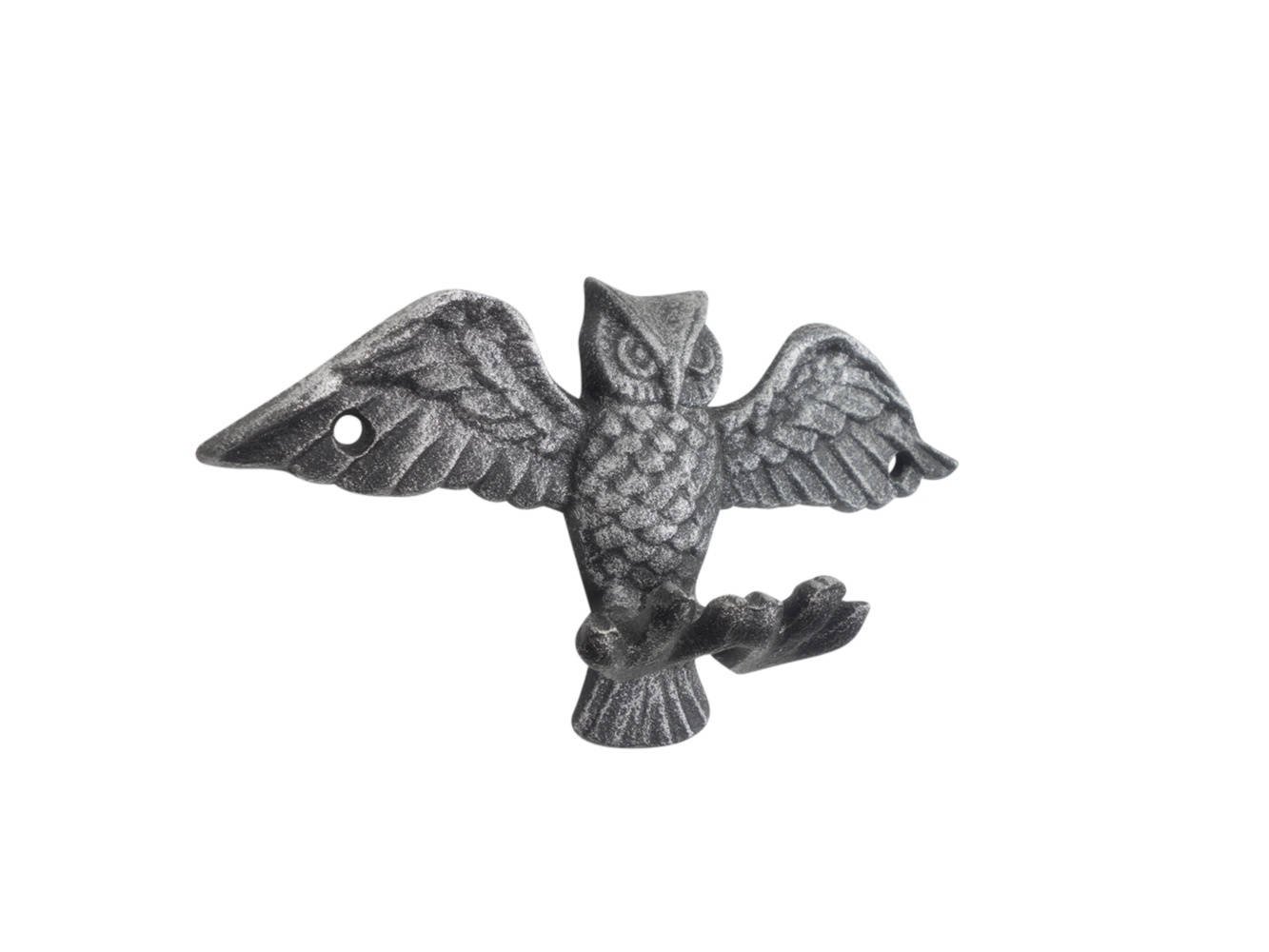 Rustic Silver Cast Iron Flying Owl Decorative Metal Talons Wall Hooks 6"" Rustic Silver Cast Iron Flying Owl Decorative Metal Talons Wall Hooks 6"" Rustic Silver Cast Iron Flying Owl Decorative Metal Talons Wall Hooks 6""