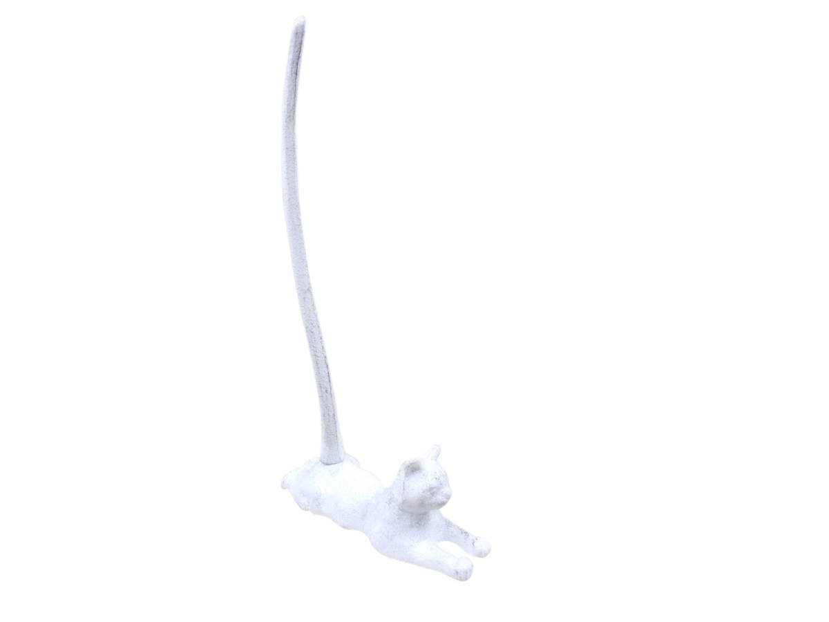This Whitewashed Cast Iron Sitting Cat Kitchen Paper Towel Holder 19" is perfect for any country living inspired kitchen. It adds charm to any small or big kitchen.  Ideal for paper towels, this durable cat pet decor towel holder 19" is crafted from cast iron. Easily mountable, display this decorative holder to show those who visit your country living lifestyle.