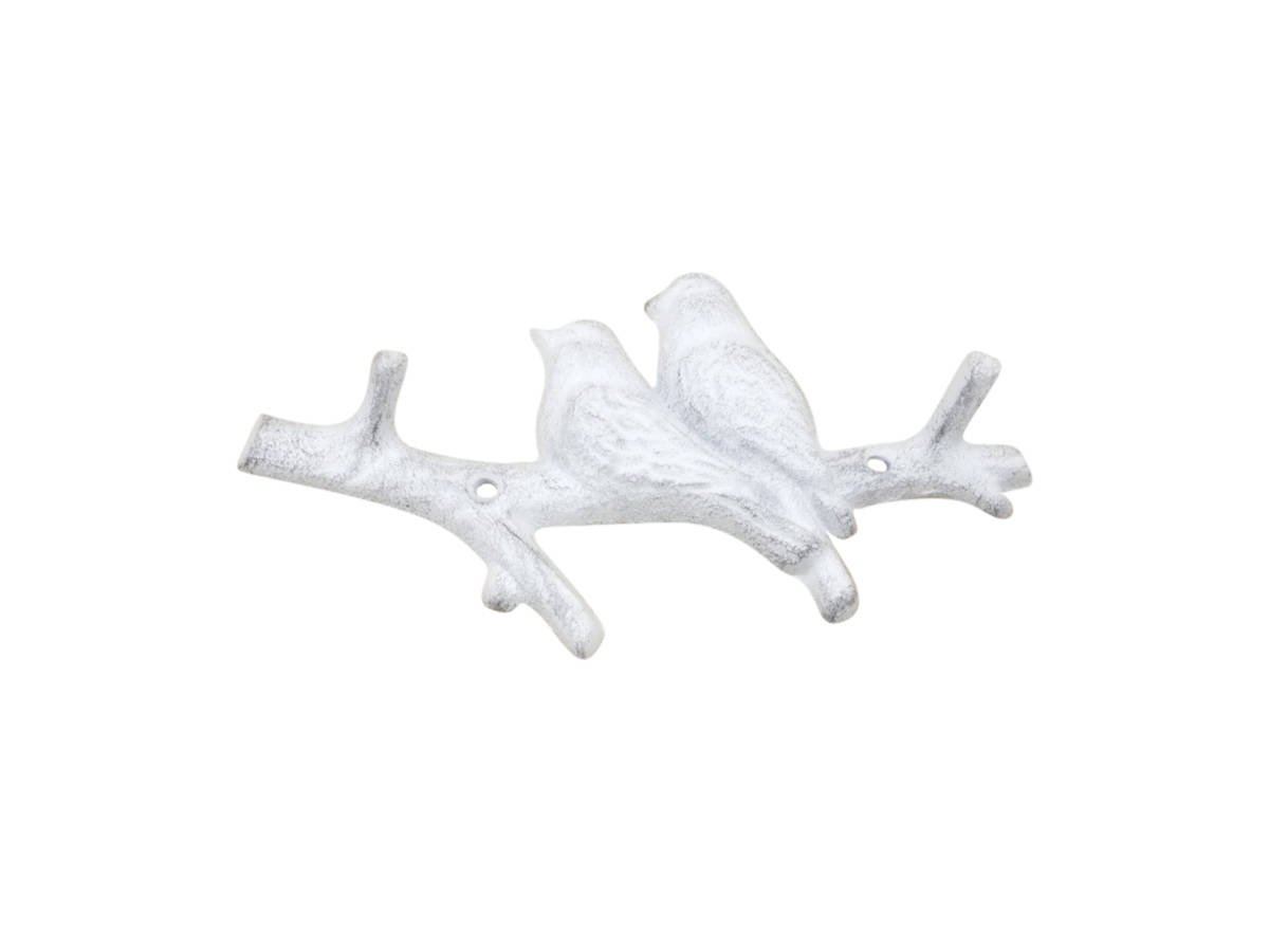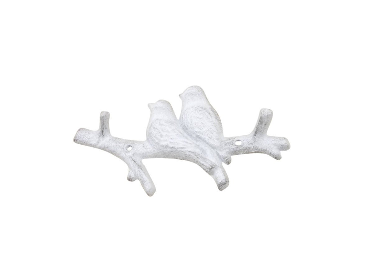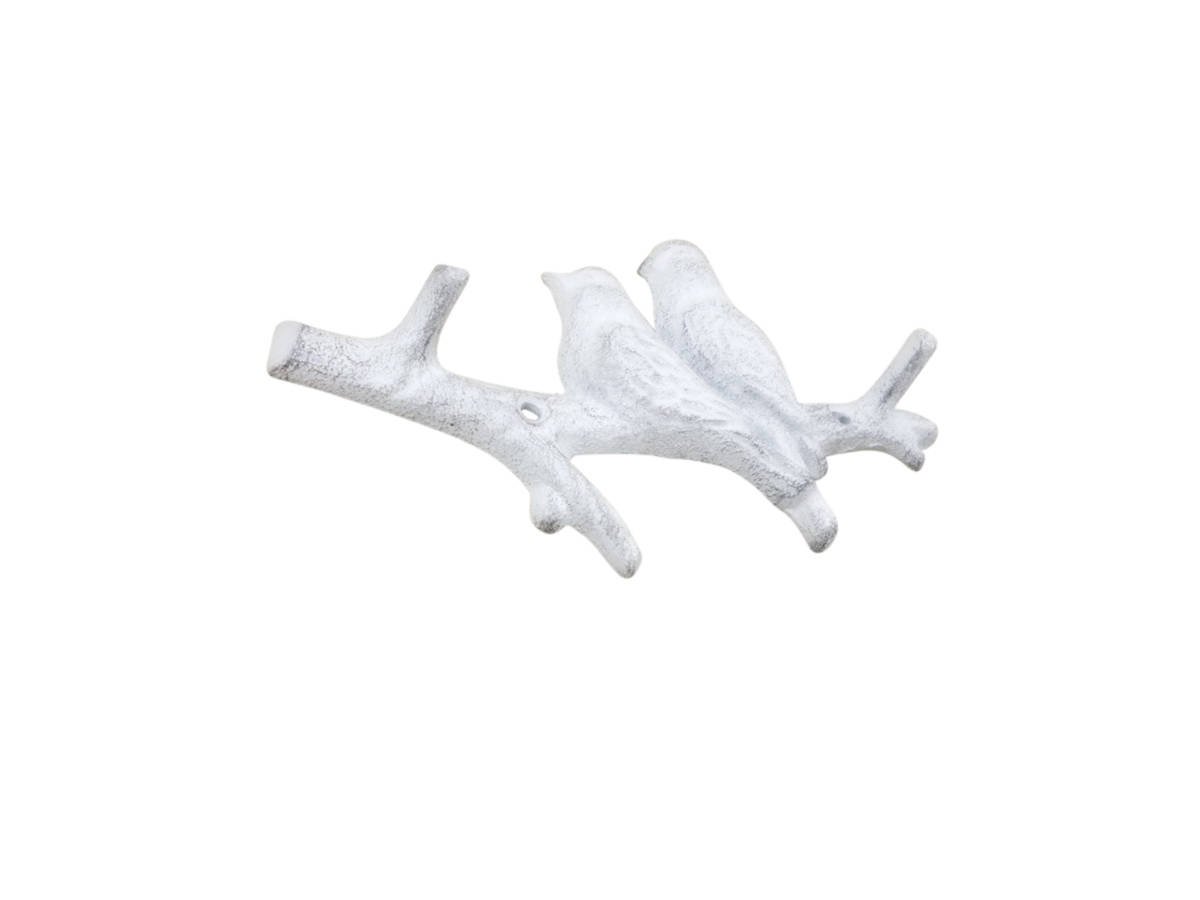 Home > Whitewashed Cast Iron Birds on Branch Decorative Metal Wall Hooks 8""