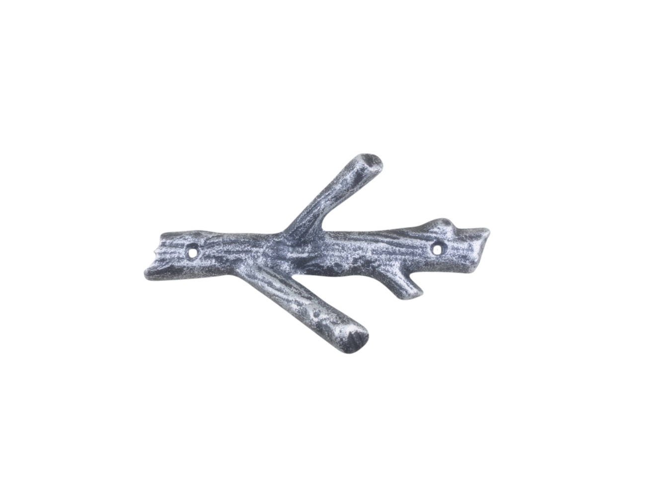 Home > Rustic Silver Cast Iron Tree Branch Double Decorative Metal Wall Hooks 7.5""