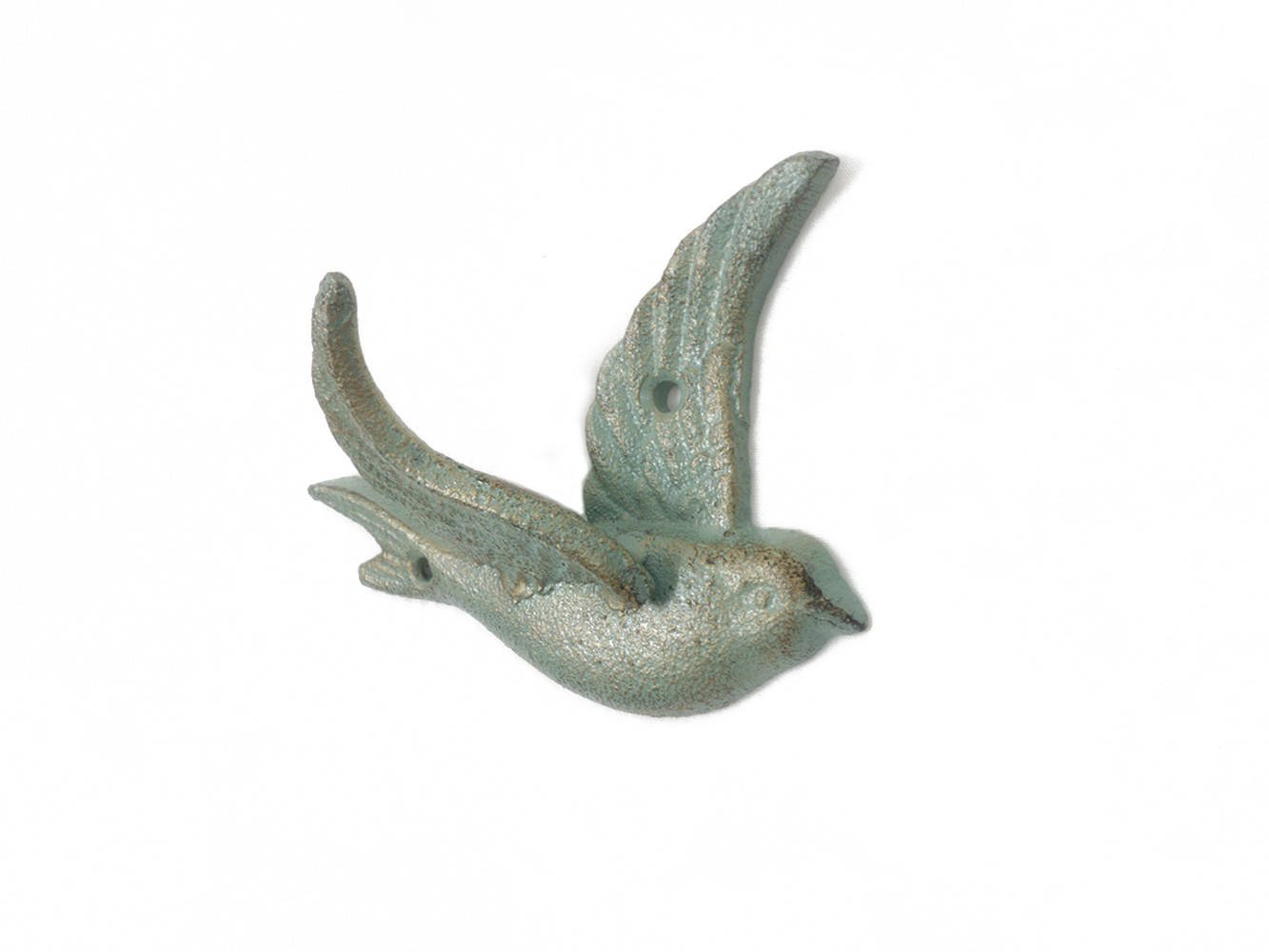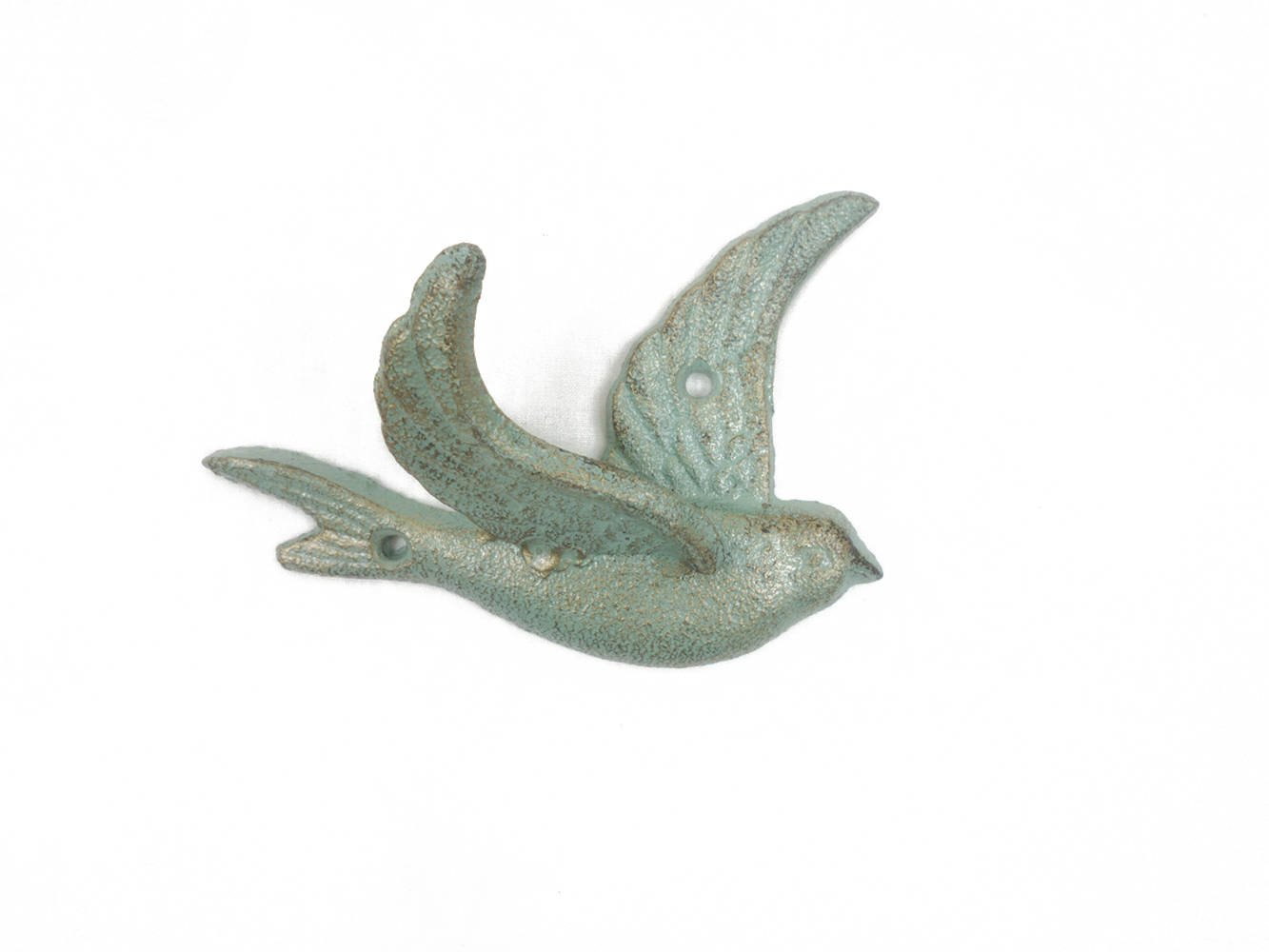 This Antique Bronze Cast Iron Flying Bird Decorative Metal Wing Wall Hook 5.5" is the perfect addition to any rustic country living home. Ideal for hanging clothes and accessories, this durable rustic bird hook is handcrafted from cast iron. Easily mountable, display this decorative hook to show rustic home decor those who visit your home your affinity for birds.