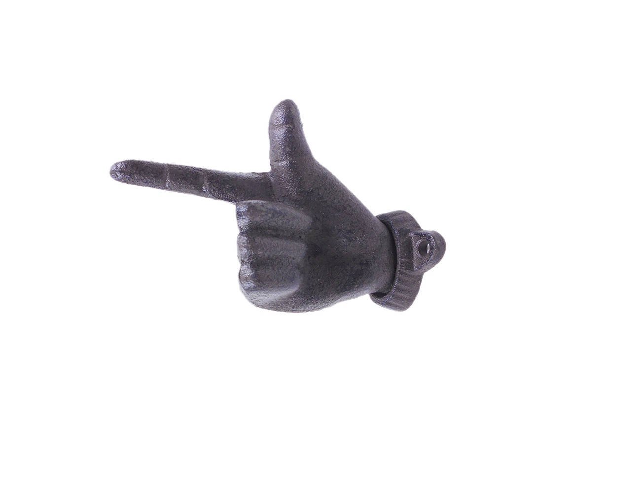 Cast Iron One Finger Pointing Decorative Metal Wall Hook 3"" Cast Iron One Finger Pointing Decorative Metal Wall Hook 3""