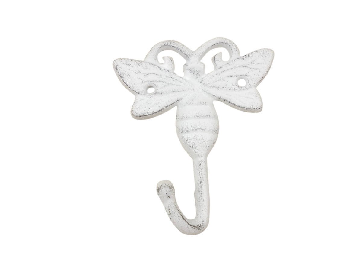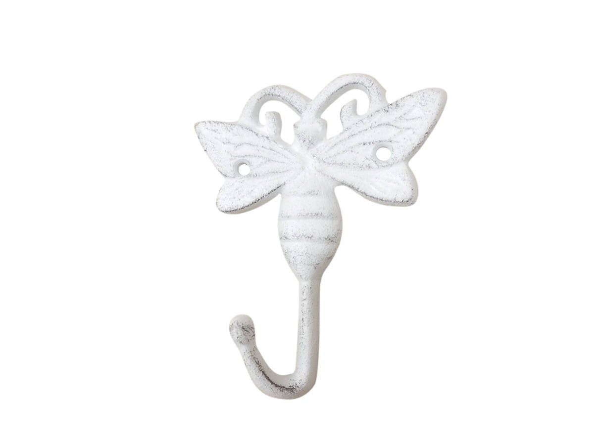Whitewashed Cast Iron Bee Decorative Metal Wall Hook 5""