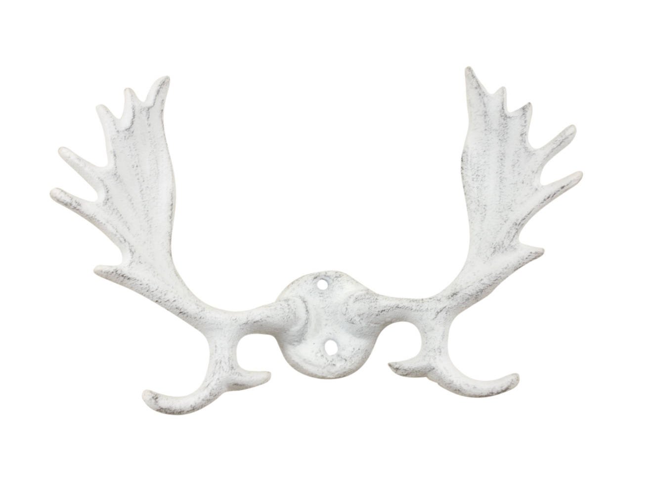 Home > Whitewashed Cast Iron Moose Antlers Decorative Metal Wall Hooks 9""