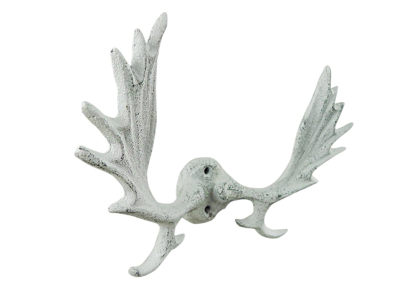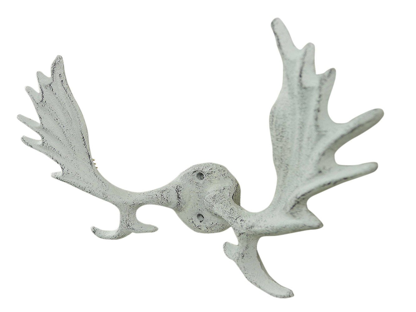 Whitewashed Cast Iron Moose Antlers Decorative Metal Wall Hooks 9"" Whitewashed Cast Iron Moose Antlers Decorative Metal Wall Hooks 9"" Whitewashed Cast Iron Moose Antlers Decorative Metal Wall Hooks 9""