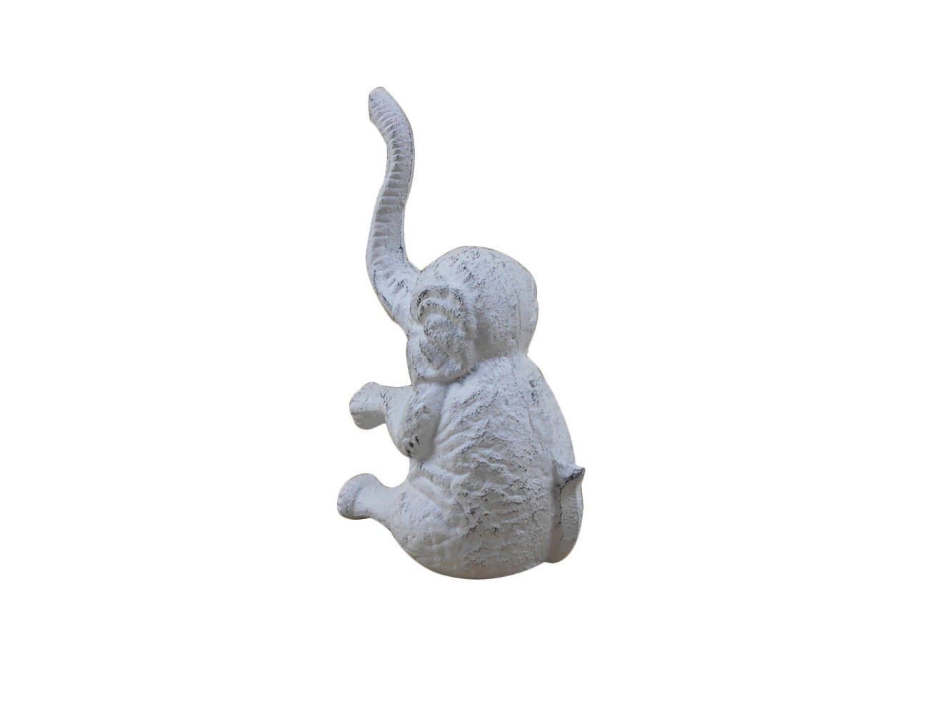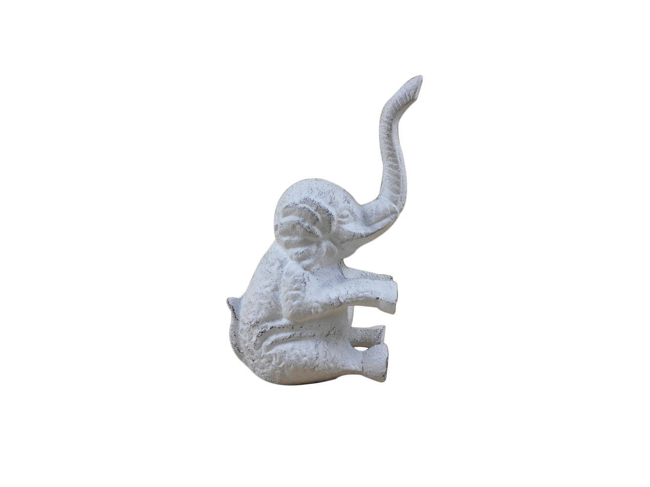 This Whitewashed Cast Iron Elephant Door Stopper 8" is the perfect addition for any rustic home. Crafted from cast iron, this heavy decorative wild animal theme door stopper conveniently props your door open. Give this rustic cast iron elephant finished door stop as the perfect gift for the enthusiast in your life or put it out for display to show those who visit your home your affinity for rustic home decor.