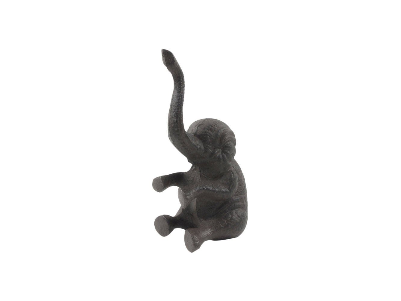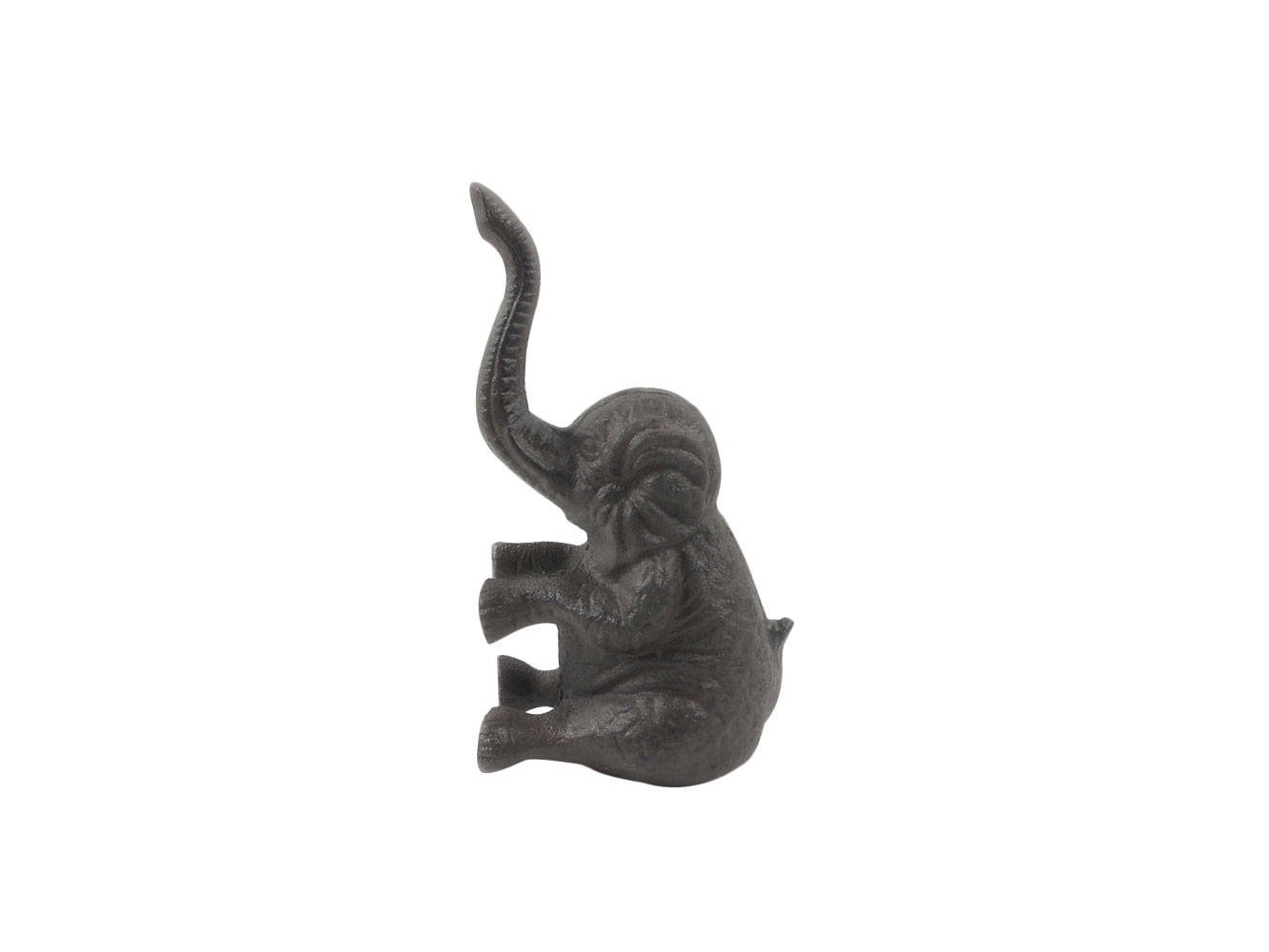 This Cast Iron Elephant Door Stopper 8" is the perfect addition for any rustic home. Crafted from cast iron, this heavy decorative wild animal theme door stopper conveniently props your door open. Give this rustic cast iron elephant finished door stop as the perfect gift for the enthusiast in your life or put it out for display to show those who visit your home your affinity for rustic home decor.