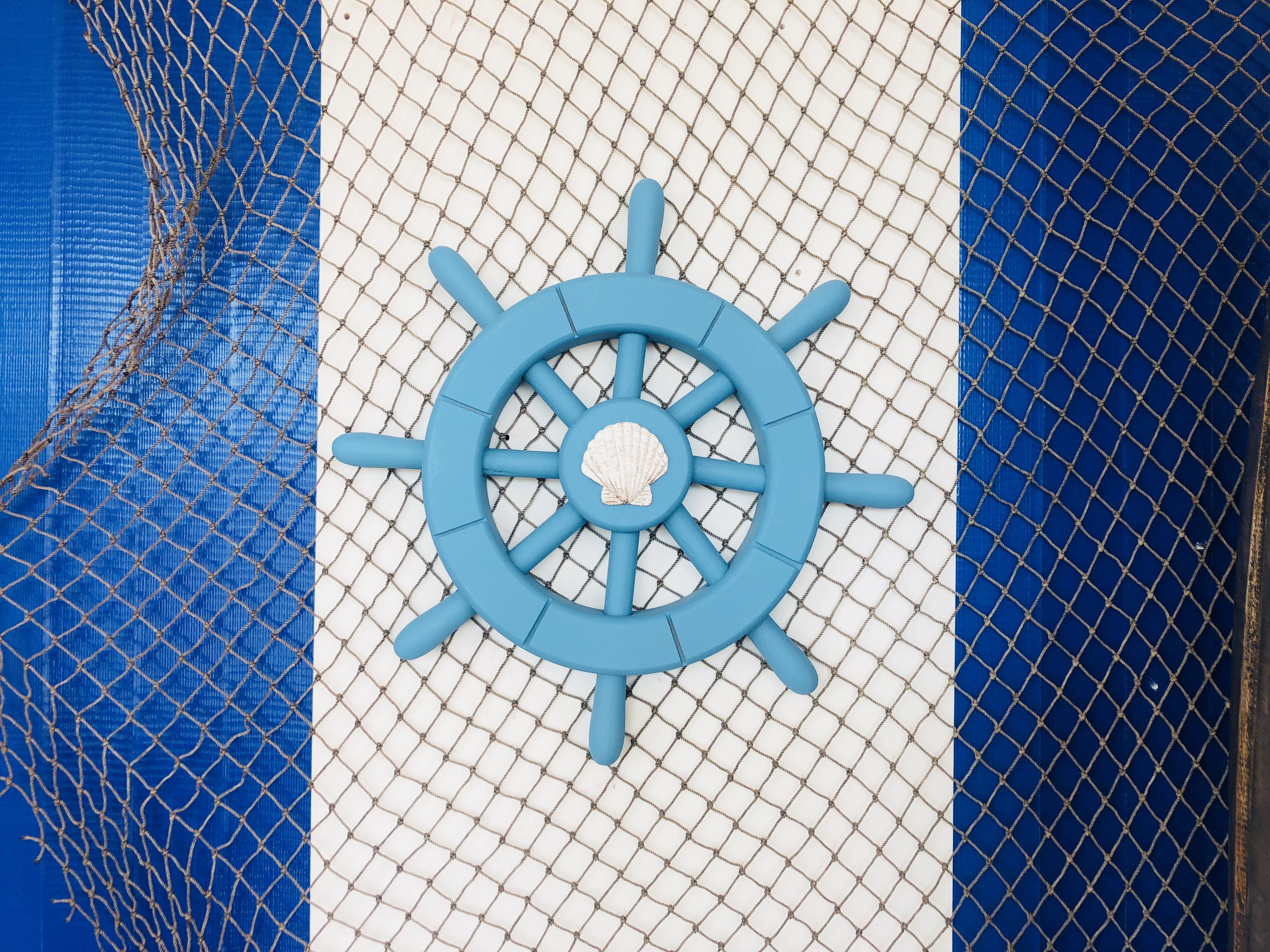 Light Blue Decorative Ship Wheel with Seashell 12"" Light Blue Decorative Ship Wheel with Seashell 12"" Light Blue Decorative Ship Wheel with Seashell 12""
