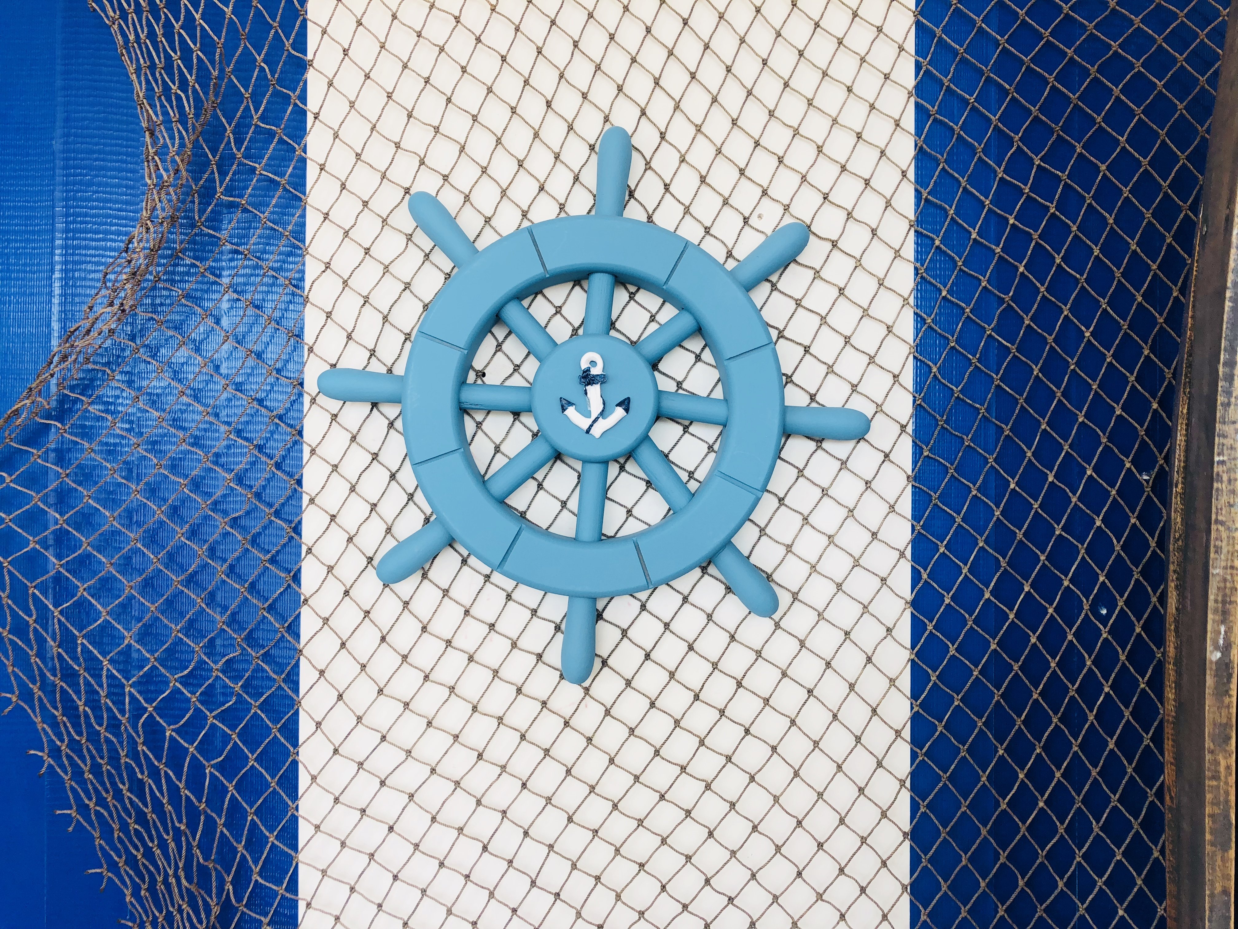 Light Blue Decorative Ship Wheel with Anchor 12""