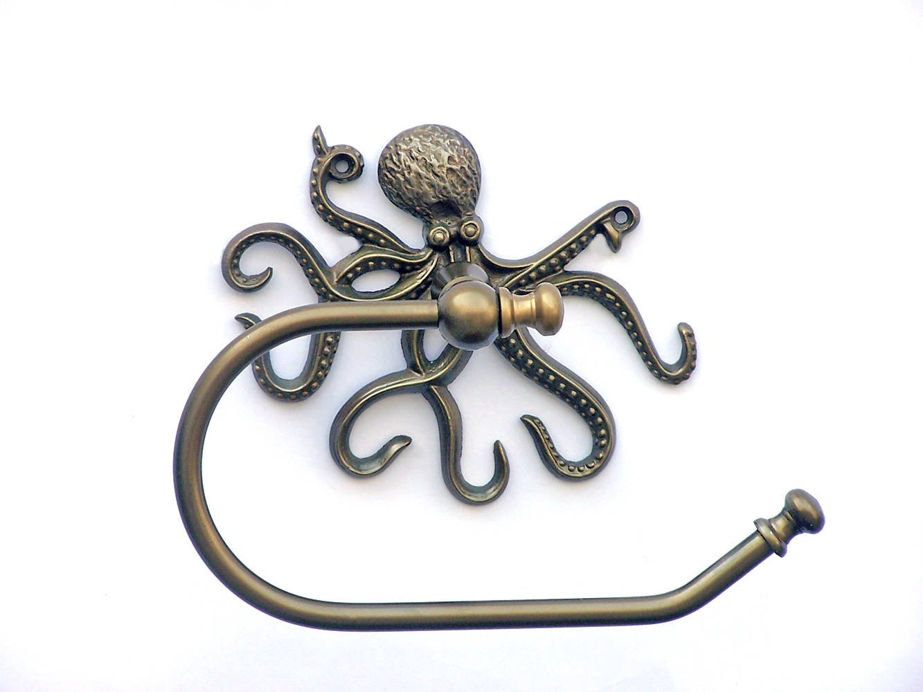Antique Brass Octopus Toilet Paper Holder 10"" Antique Brass Octopus Toilet Paper Holder 10"" Antique Brass Octopus Toilet Paper Holder 10""