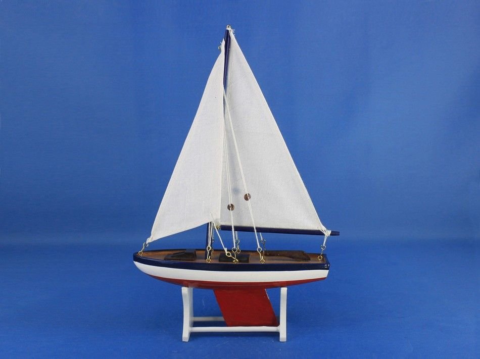Our new Wooden Decorative American Model Sailboat 12" - model salboat is freshly designed with increased craftsmanship. Available in several different colors, and styles. Included with your purchase is a wooden base to prominently display the model after use. These sleek and elegent model sailboats bring a winning spirit and nautical flair to the décor of any room with the clean lines and graceful features. Attaching sails is a simple process typically taking no more than 2 minutes.